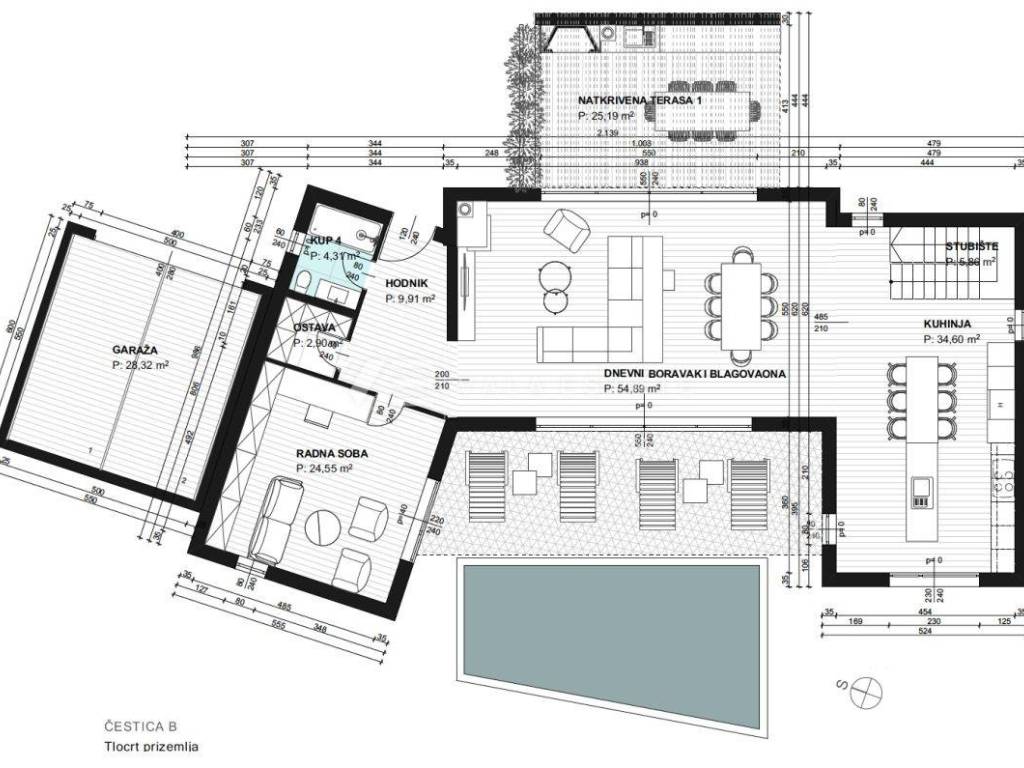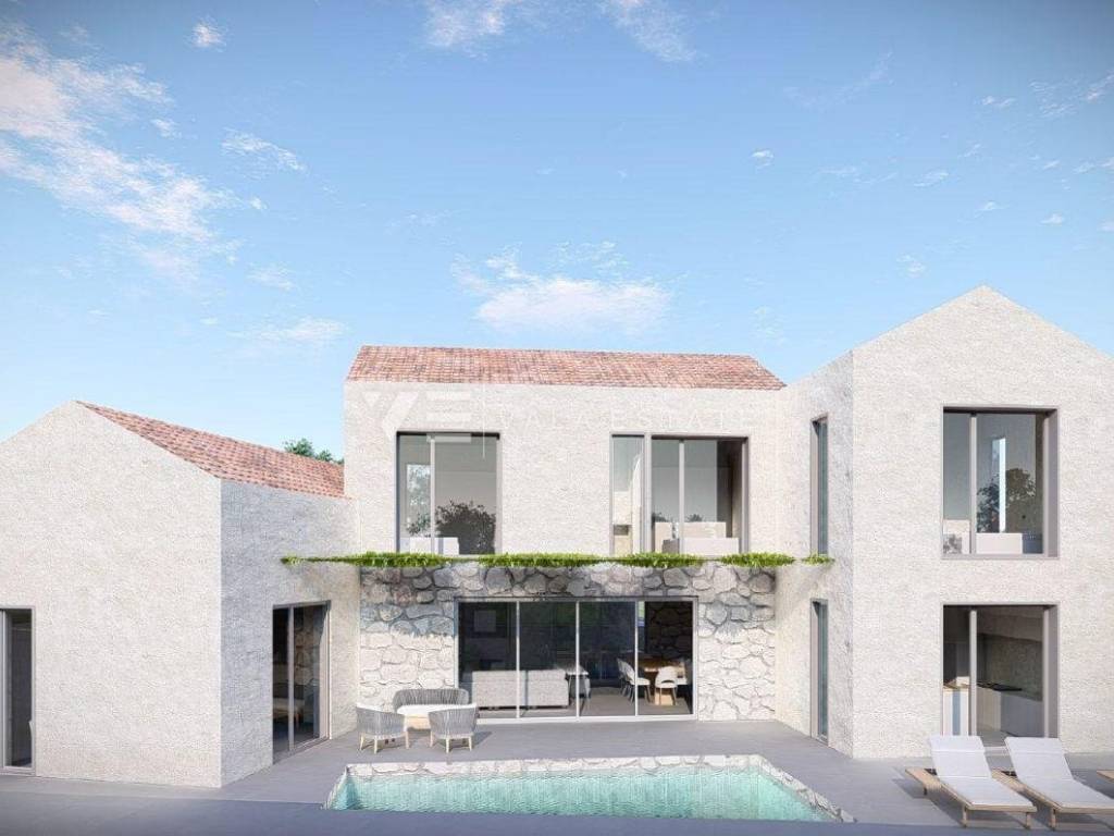 Nekretnine otok Krk, Vrbnik šire područje - na prodaju je građevinsko zemljište veličine 757 m2 sa projektnom dokumentacijom za izgradnju moderne mediteranske vile za odmor ili vlastito korištenje od 328,83 m2 sa garažom, bazenom i oplemenjenom okućnicom. Zemljište se nalazi na mirnoj lokaciji udaljenoj 5000 m od mora, omeđeno zelenom zonom i obiteljskim vilama. Agencija Vala Estate Malinska će Vam omogućiti siguran i transparentan prijenos vlasništva i sve potrebne dokumentacije.