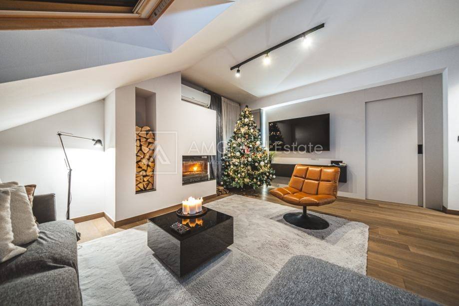 • Stan se ističe prostranim i prekrasnim dnevnim boravkom povezanog koncepta s blagovaonicom i kuhinjom, čime se dobiva otvoren, ugodan i vrlo svijetao životni prostor, idealan za obiteljski život i druženja. Posebnu atmosferu daje vlastiti dimnjak u dnevnom boravku, koji omogućuje korištenje kamina na drva.