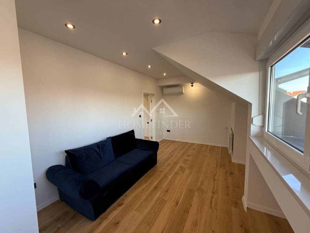 Stan je u potpunosti adaptiran 2026. godine te je uređen u modernom stilu s naglaskom na kvalitetu materijala i funkcionalan raspored. Sastoji se od dnevnog boravka otvorenog koncepta povezanog s kuhinjom, spavaće sobe i kupaonice. Neto korisna površina iznosi 53,9 m², dok tlocrtna površina stana iznosi 54,5 m², a pripada mu i spremište u podrumu površine 3,4 m².
