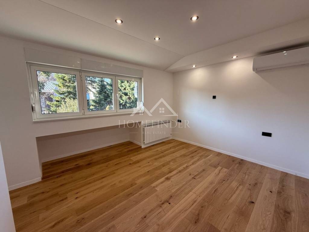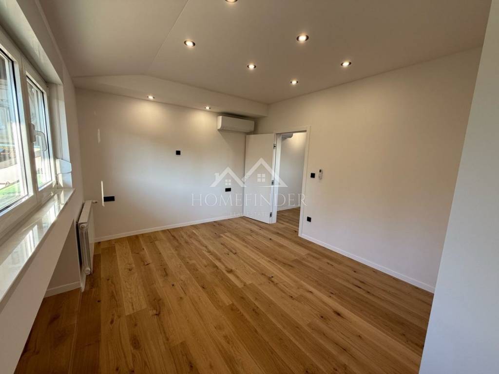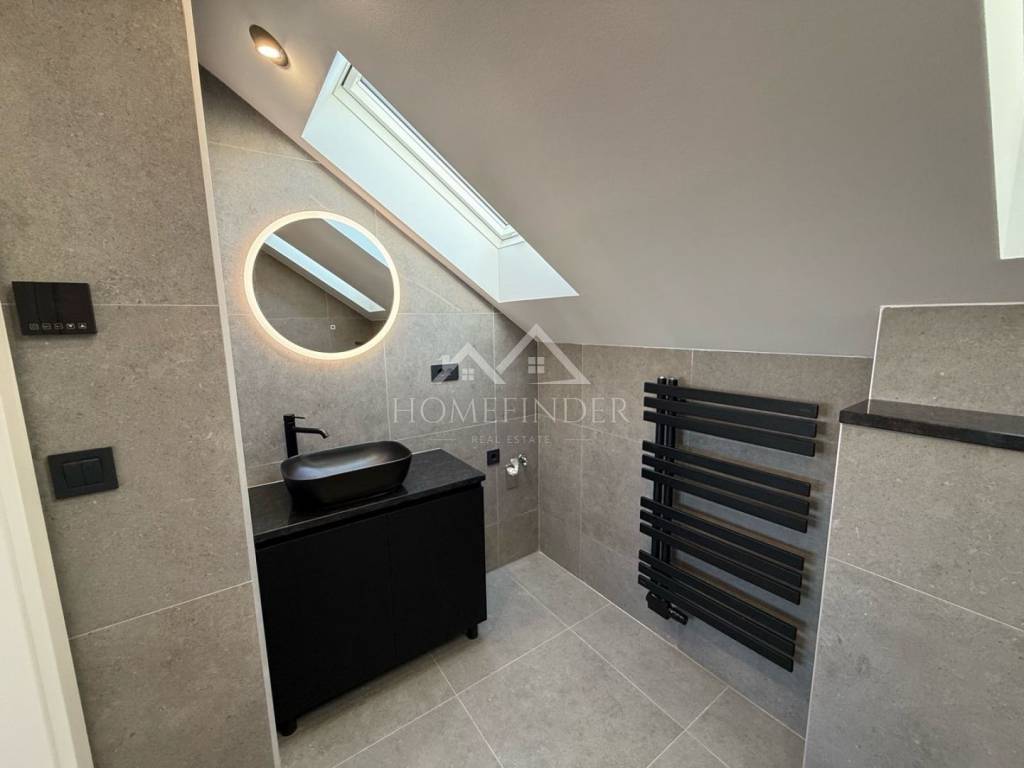 Tijekom adaptacije postavljene su nove instalacije struje, plina i vode, hrastov parket, talijanska keramika te walk-in tuš. Stan je dodatno opremljen etažnim plinskim grijanjem, podnim grijanjem u kupaonici, Gree inverter klimom, PVC i ALU stolarijom te protuprovalnim vratima. Omogućeno je i WiFi upravljanje grijanjem i klimom.
