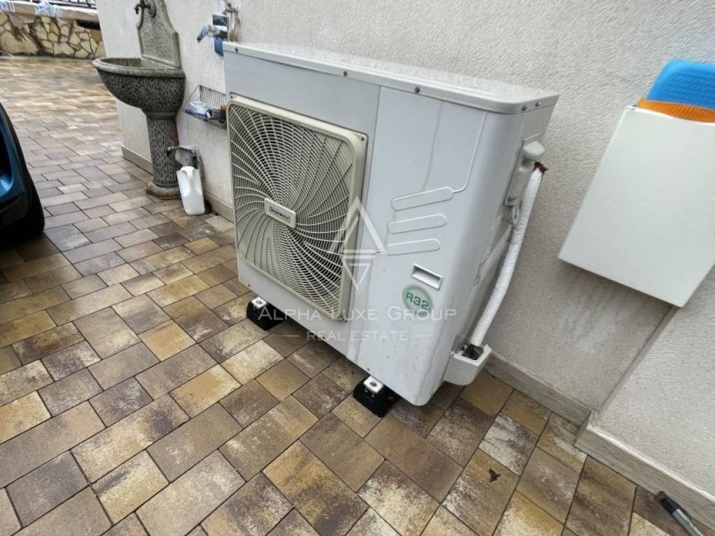 Nekretnina je opremljena suvremenim energetskim sustavima osmišljenim za smanjenje dugoročnih troškova održavanja. Instalirana je solarna priprema za toplu vodu s dva kolektora na krovu i solarnim bojlerom zapremine 300 litara. Za grijanje i hlađenje koristi se dizalica topline koja osigurava ugodnu temperaturu tijekom cijele godine. Dodatno je ugrađena fotonaponska elektrana snage 2,1 kW za proizvodnju električne energije za vlastite potrebe, čime se pridonosi održivom i ekonomičnom načinu života.