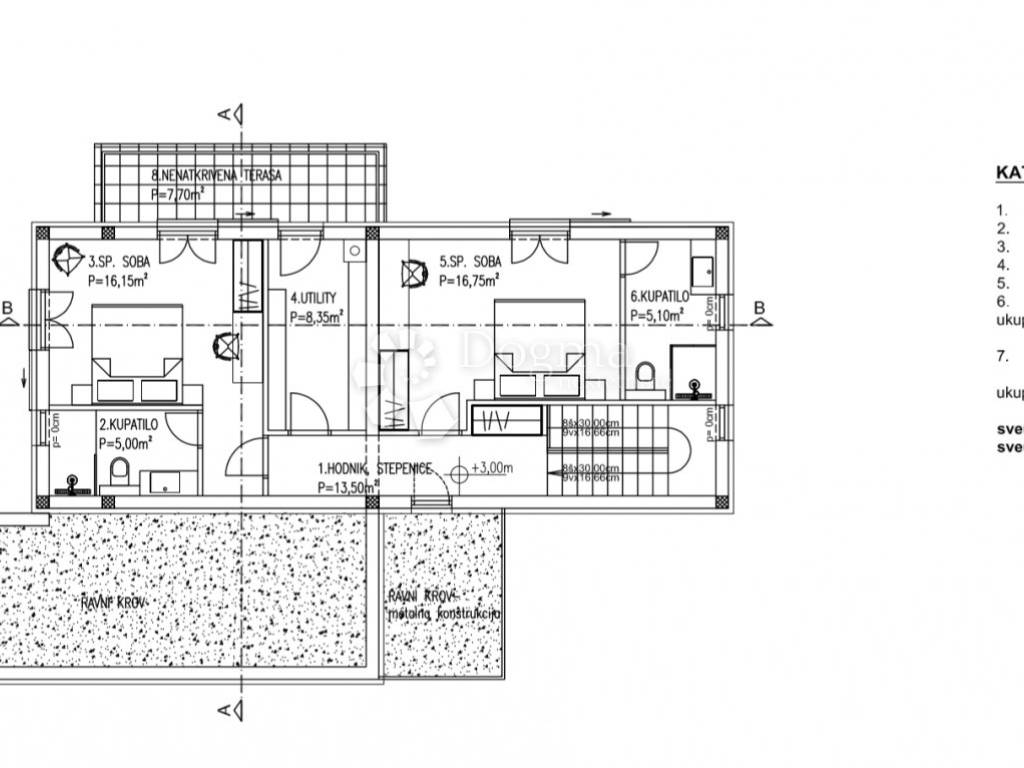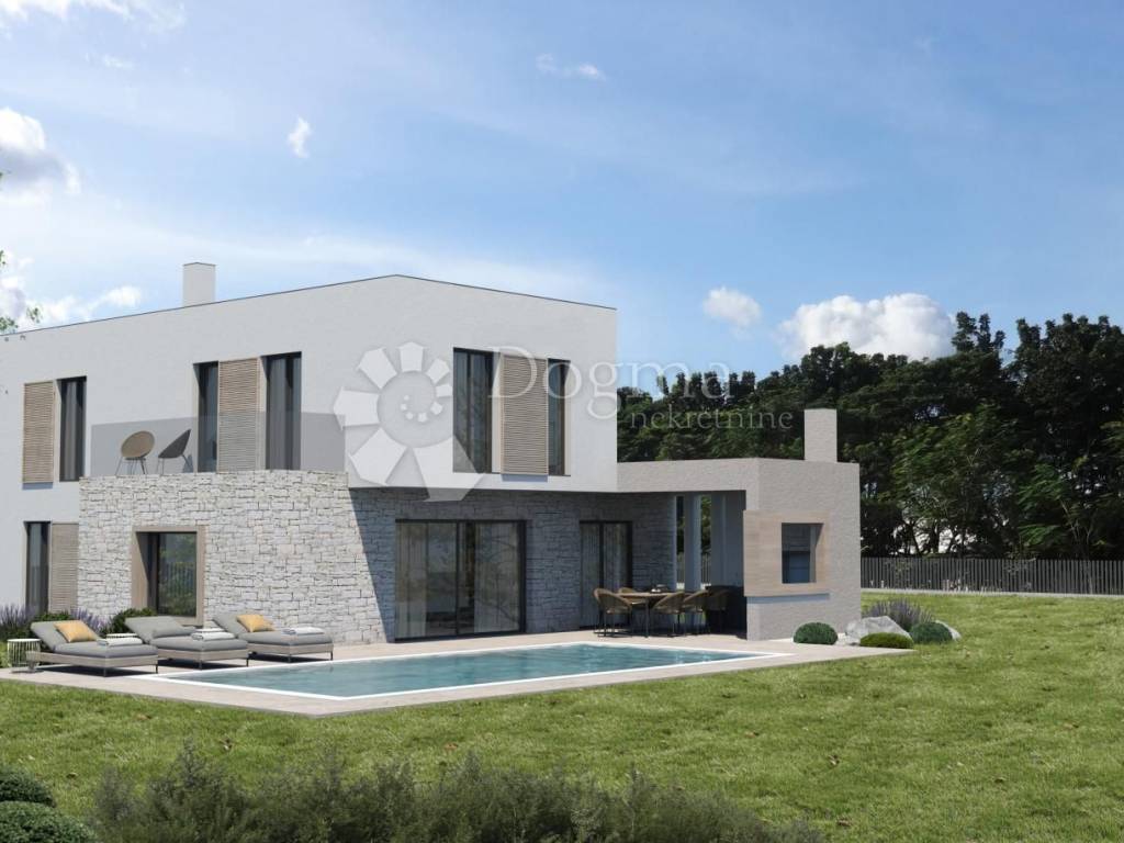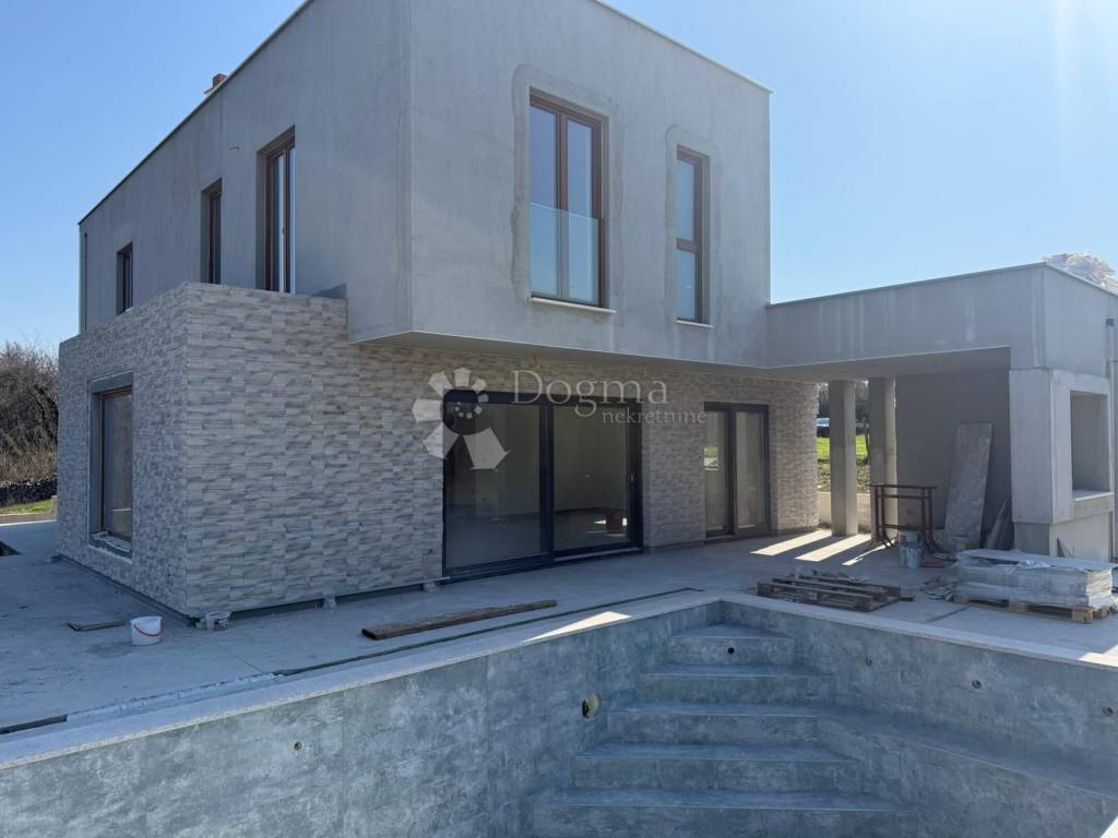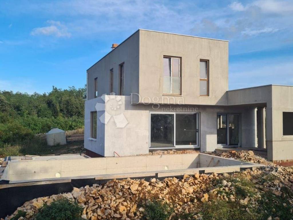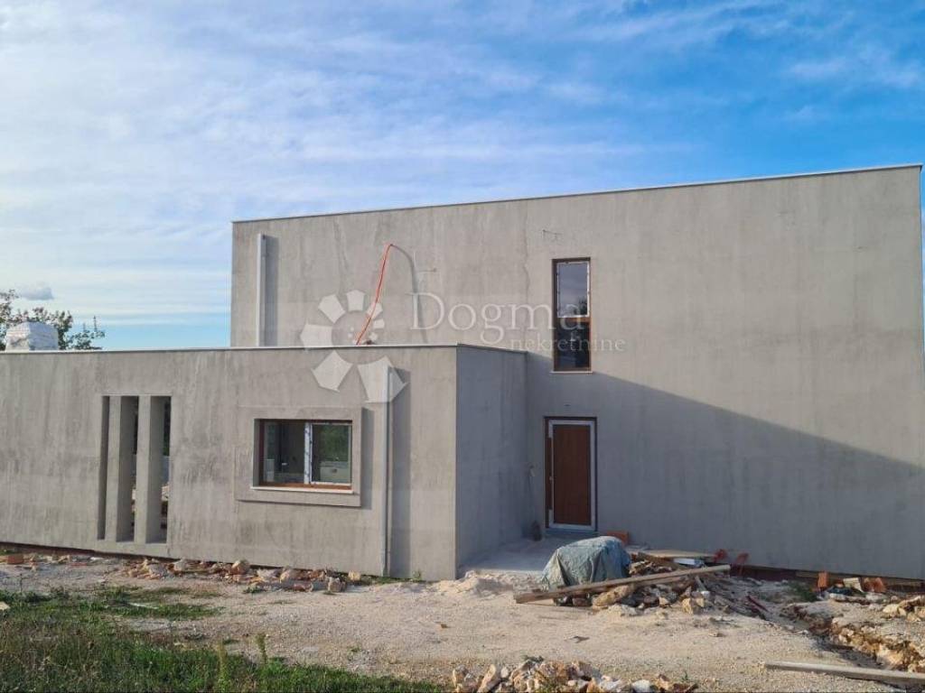 Predstavljamo Vam prekrasnu modernu kuću u izgradnji s prostranim eksterijerom. Ova kuća smještena na rubu mjesta pruža potpunu privatnost i mir, omogućujući Vam da uživate u udobnosti svoga doma u tišini. Kuća se proteže na dva nivoa, ukupne površine 150 m2, s nježno naglašenim modernim dizajnom koji se savršeno uklapa u prirodno okruženje.