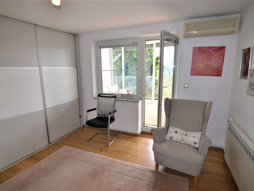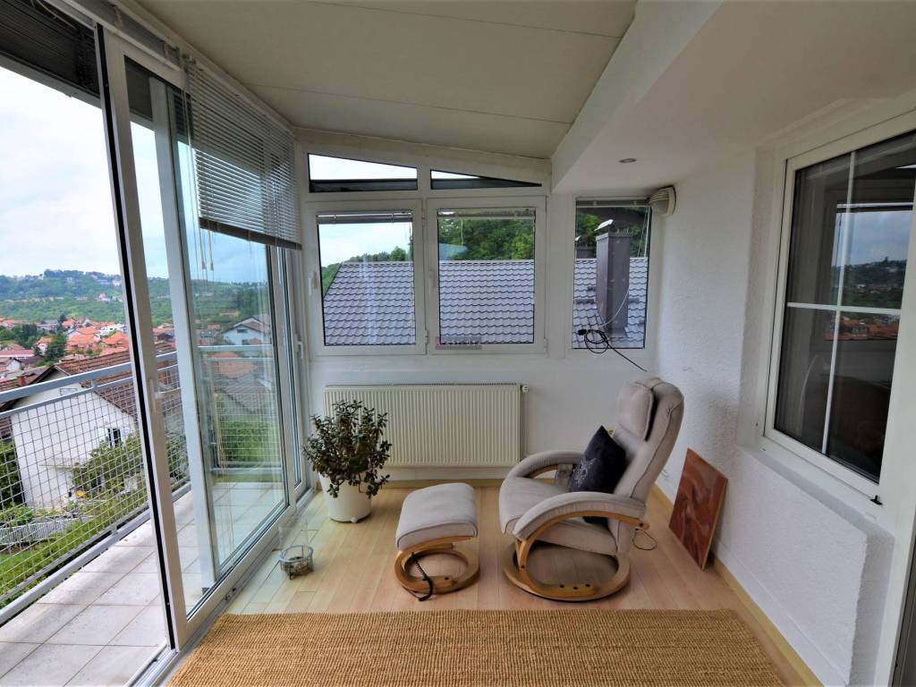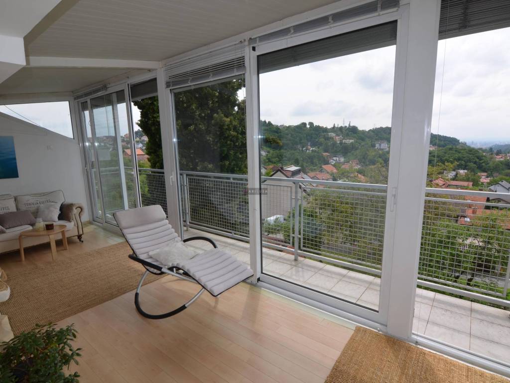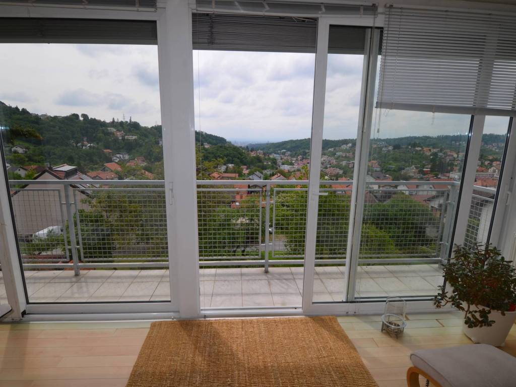 Iznajmljuje se prekrasan dvo-etažan komforan stan u zgradi su dva stana, vrlo kvalitetne i solidne građe. Idealno za rad od kuće ili za obitelj sa djecom. U blizini je žičara i planinske staze za Sljeme. Stan ima predivan panoramski pogled na grad, idiličan vrt s travnjakom i mogućnošću sadnje eko vrta. U blizini se nalazi dućani, vrtić i škola, medicinska i veterinarska ambulanta, mesnica i dućan zdrave hrane te sportski sadržaji kao i javni prijevoz.