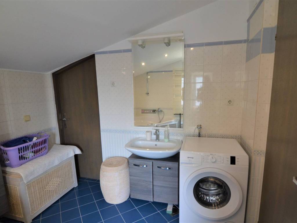 Stan se prostire se na dva kata, a sastoji se od 3 spavaće sobe , velikog dnevnog boravka s blagovaonom, velike kompletno opremljene kuhinje.