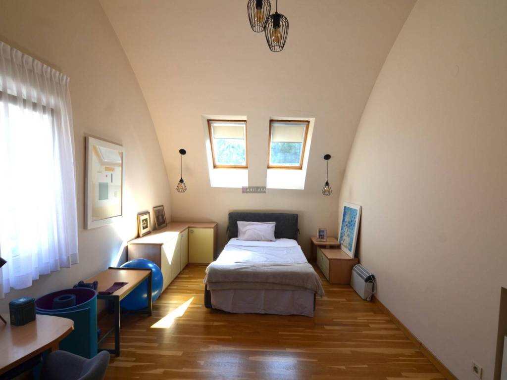 Iznajmljuje se prekrasan penthouse površine 170 m2 u manjoj stambenoj zgradi u mirnoj ulici na Pantovčaku.Stan se nalazi na drugom katu zgrade, orijentiran na sve 4 strane svijeta, prepun svijetla s predivnim pogledom na zelenilo.Sastoji se od prostranog ulaznog hodnika sa ulazom u dvije spavaće sobe i kupaonice, glavne spavaće sobe s zasebnom kupaonicomi walk-in tuš kabinom, prostrane kompletno opremljene kuhinje sa blagovaonicom i dnevnim boravkom te izlazom na prekrasnu terasu.Stanu pripada garaža te vanjsko parkirno mjesto, i spremište u podrumu. Mirno okruženje nadomak grada na elitnoj lokaciji!