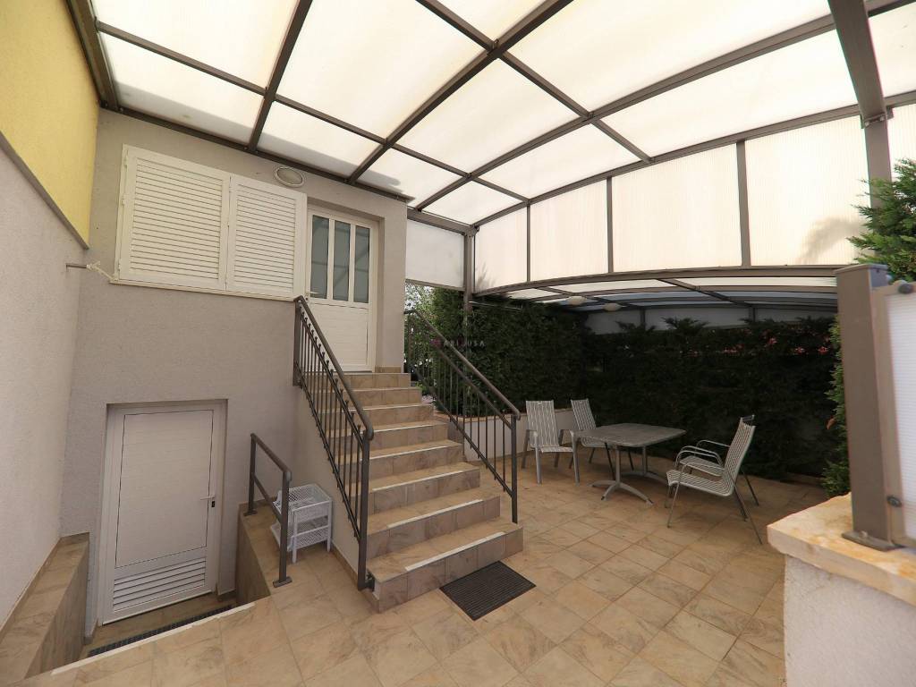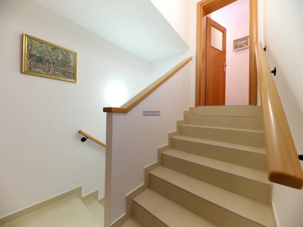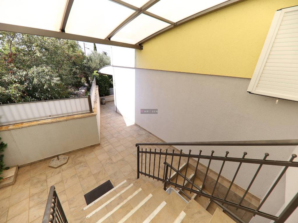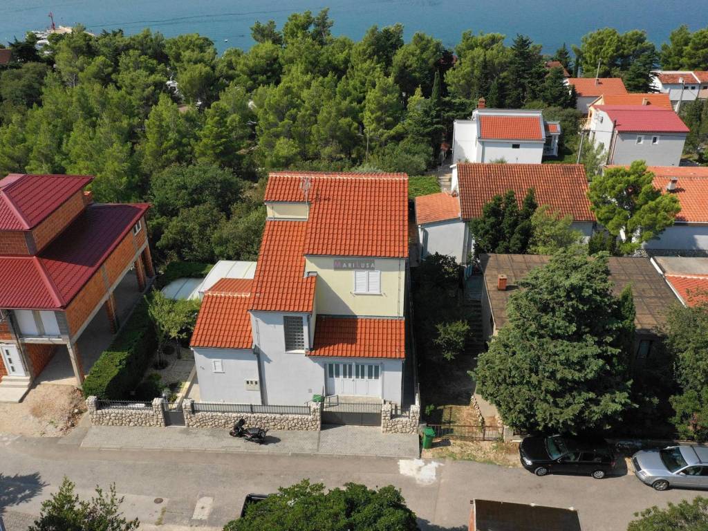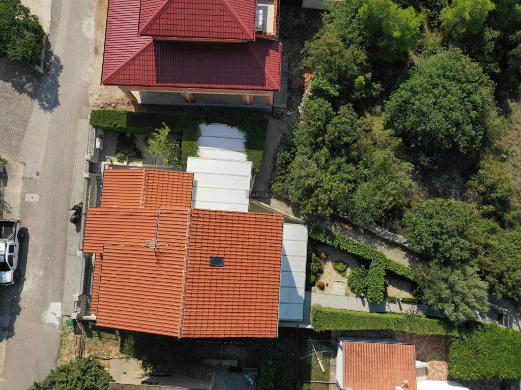 Okućnica uključuje hortikulturno uređen vrt s automatskim sustavom za navodnjavanje "kap po kap",koji se koristi za zalijevanje biljaka tijekom ljetnih mjeseci. Ukupna površina zemljišta sa kućom je 365 m2.Kuća je okružena zelenilom, do mora ima svega 120 m, odnosno par minura ugodnog hoda.