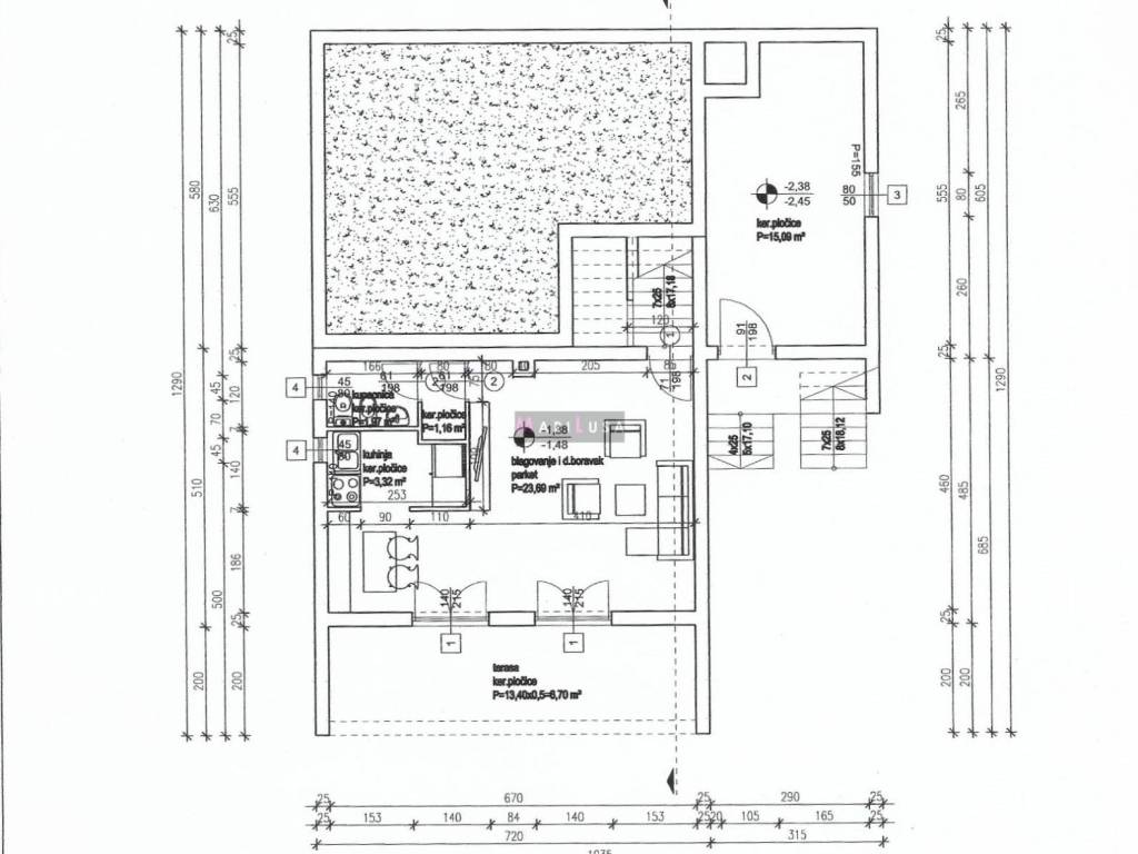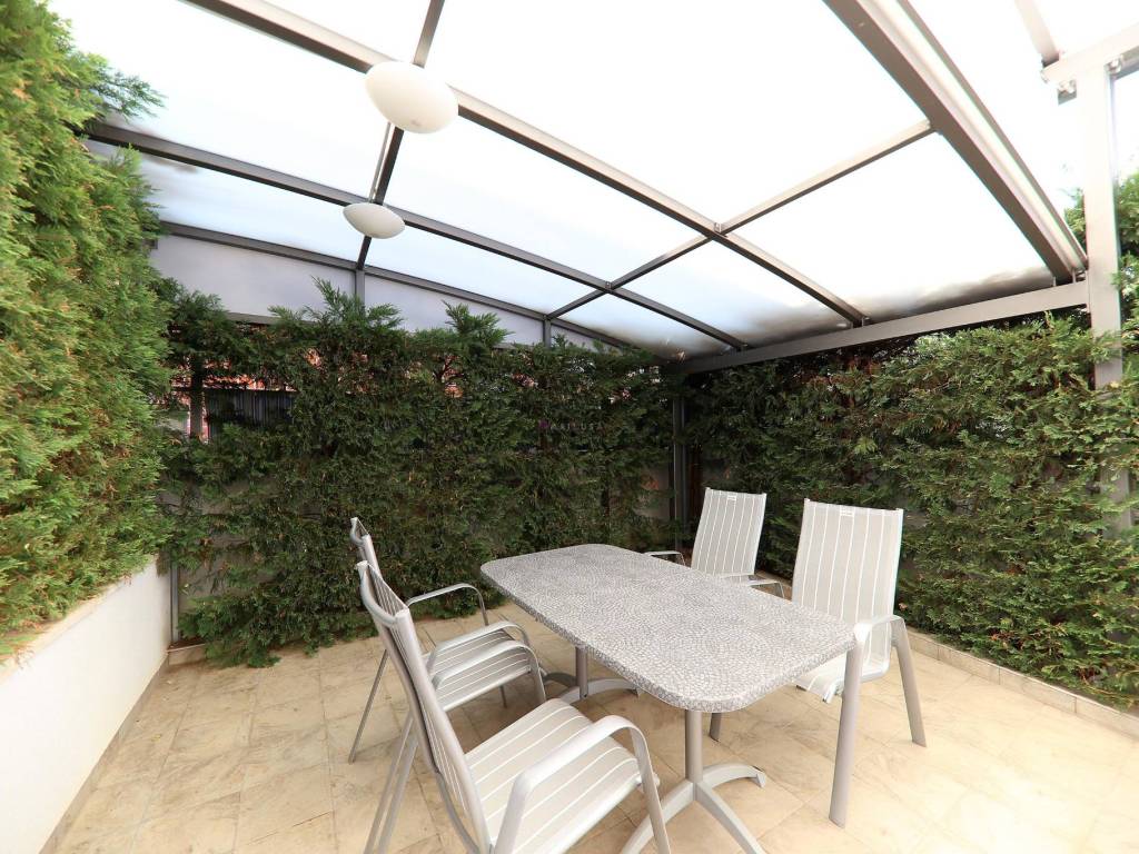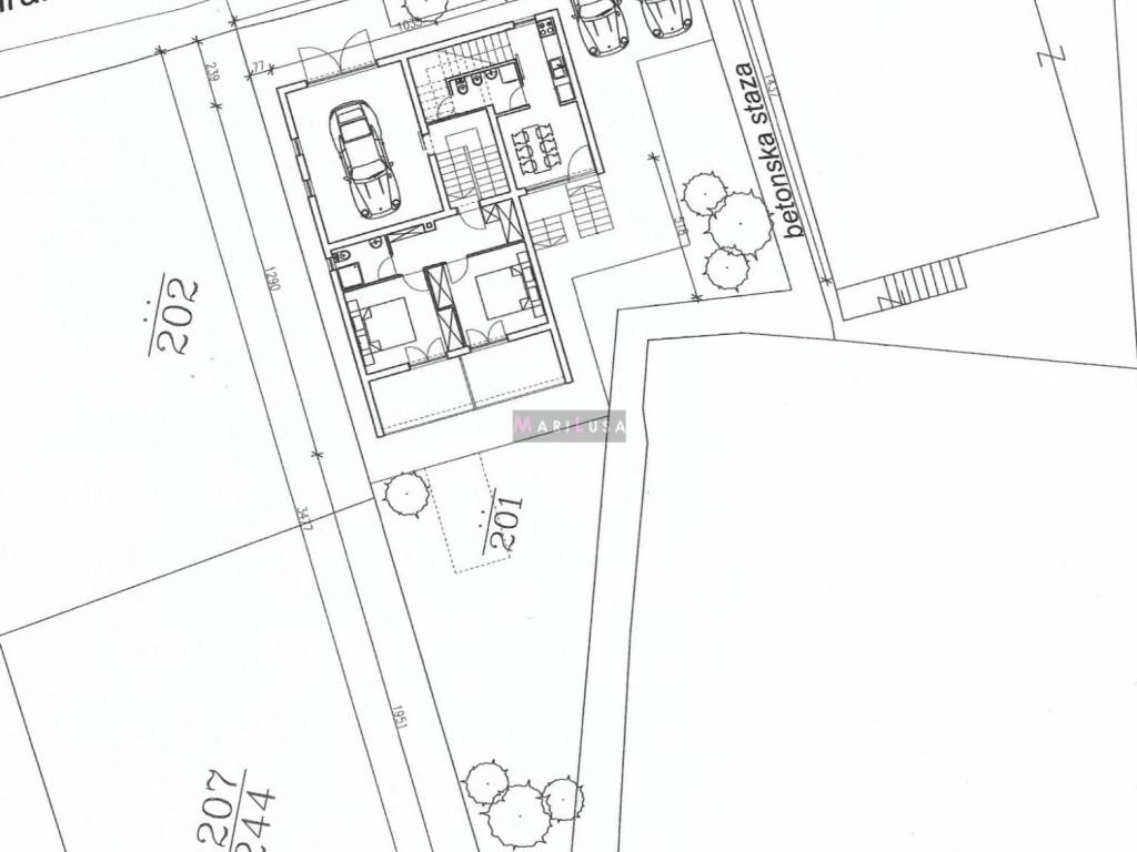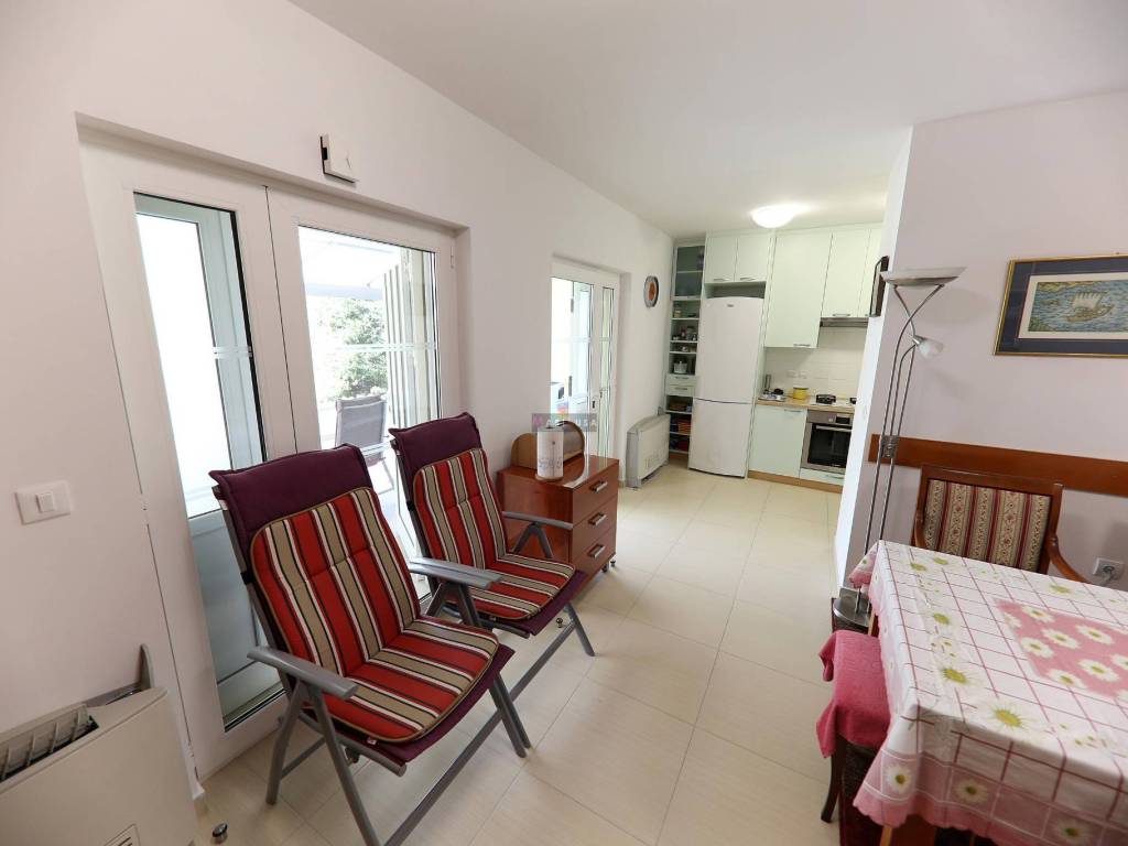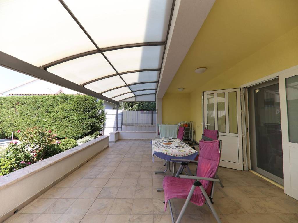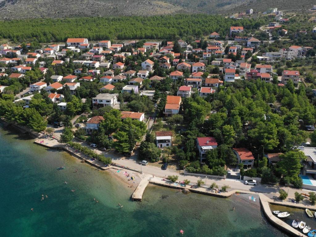 Okućnica uključuje hortikulturno uređen vrt s automatskim sustavom za navodnjavanje "kap po kap",koji se koristi za zalijevanje biljaka tijekom ljetnih mjeseci. Ukupna površina zemljišta sa kućom je 365 m2.Kuća je okružena zelenilom, do mora ima svega 120 m, odnosno par minura ugodnog hoda.