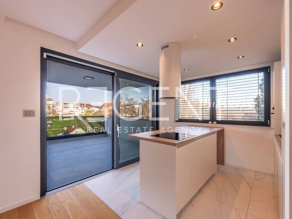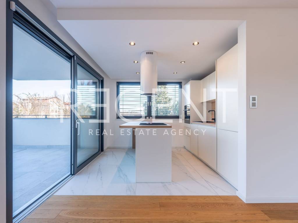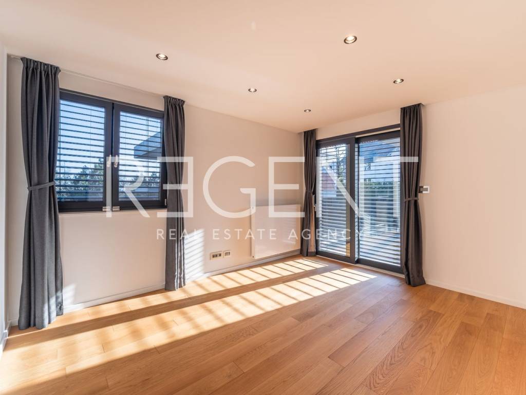 Iznajmljuje se luksuzan četverosoban stan površine 136 m² na Srebrnjaku, idealan za obitelj ili poslovne ljude koji traže prostran, kvalitetno opremljen stan na mirnoj i zelenoj lokaciji u gradu. Stan se nalazi u mirnom dijelu Srebrnjaka, u novijoj zgradi staroj dvije godine, u okruženju obiteljskih kuća i zelenila. Lokacija je dobro povezana s ostatkom grada autobusnim i tramvajskim linijama, a u blizini su vrtić, osnovna škola, tržnica Kvatrić, dom zdravlja, pošta, ljekarne i trgovine, što svakodnevni život čini jednostavnim i praktičnim. Stan se sastoji od ulaznog hodnika, prostranog dnevnog boravka, kuhinje s blagovaonicom, tri spavaće sobe, kupaonice, zasebnog WC-a te dvije terase. Uz stan dolazi i privatni vrt, jedno garažno parkirno mjesto te jedno vanjsko parkirno mjesto. Stan je opremljen modernom kuhinjom i ugradbenim ormarima, a postoji mogućnost dodatnog namještanja uz dogovor. Oprema je visoke kvalitete i uključuje Mitsubishi dizalice topline, podno grijanje u svim prostorijama osim spavaćih soba, Požgaj parket, aluminijsku vanjsku stolariju te sobna vrata izrađena po mjeri. Kupaonice su potpuno opremljene Villeroy & Boch sanitarijama, ormarićima, ogledalima i dekorativnom rasvjetom. Dvorište je uređeno kaskadno s automatskim sustavom navodnjavanja. Minimalan period najma je 12 mjeseci. Prosječni režijski troškovi iznose oko 100 EUR mjesečno. Za više informacija i dogovor oko razgledavanja slobodno nas kontaktirajte.