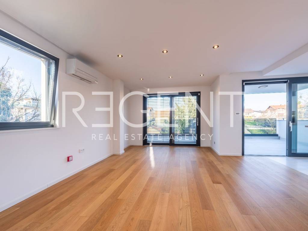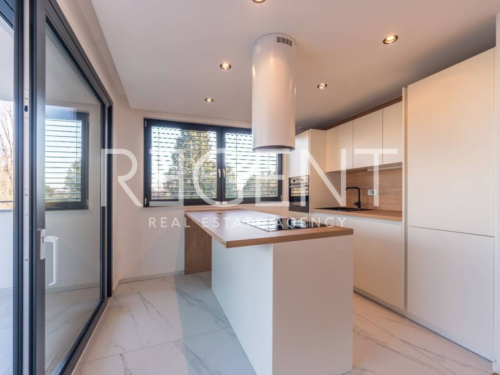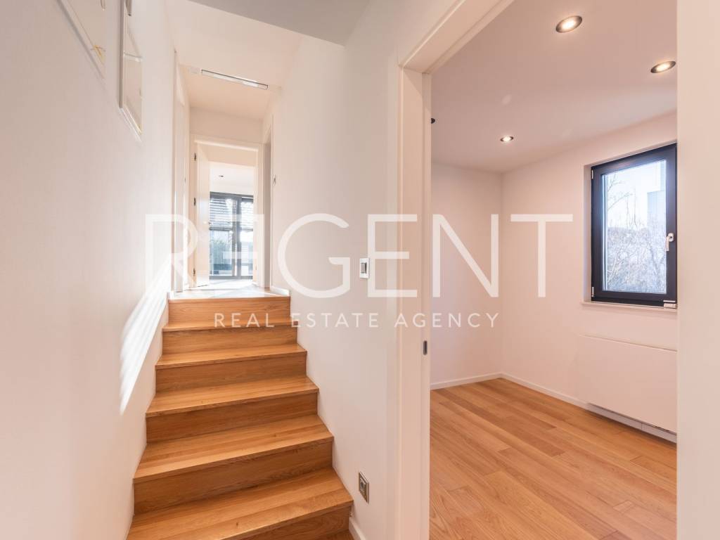 Iznajmljuje se luksuzan četverosoban stan površine 136 m² na Srebrnjaku, idealan za obitelj ili poslovne ljude koji traže prostran, kvalitetno opremljen stan na mirnoj i zelenoj lokaciji u gradu. Stan se nalazi u mirnom dijelu Srebrnjaka, u novijoj zgradi staroj dvije godine, u okruženju obiteljskih kuća i zelenila. Lokacija je dobro povezana s ostatkom grada autobusnim i tramvajskim linijama, a u blizini su vrtić, osnovna škola, tržnica Kvatrić, dom zdravlja, pošta, ljekarne i trgovine, što svakodnevni život čini jednostavnim i praktičnim. Stan se sastoji od ulaznog hodnika, prostranog dnevnog boravka, kuhinje s blagovaonicom, tri spavaće sobe, kupaonice, zasebnog WC-a te dvije terase. Uz stan dolazi i privatni vrt, jedno garažno parkirno mjesto te jedno vanjsko parkirno mjesto. Stan je opremljen modernom kuhinjom i ugradbenim ormarima, a postoji mogućnost dodatnog namještanja uz dogovor. Oprema je visoke kvalitete i uključuje Mitsubishi dizalice topline, podno grijanje u svim prostorijama osim spavaćih soba, Požgaj parket, aluminijsku vanjsku stolariju te sobna vrata izrađena po mjeri. Kupaonice su potpuno opremljene Villeroy & Boch sanitarijama, ormarićima, ogledalima i dekorativnom rasvjetom. Dvorište je uređeno kaskadno s automatskim sustavom navodnjavanja. Minimalan period najma je 12 mjeseci. Prosječni režijski troškovi iznose oko 100 EUR mjesečno. Za više informacija i dogovor oko razgledavanja slobodno nas kontaktirajte.