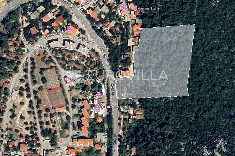 Slivno, Klek, građevinsko zemljište u neuređenom dijelu građevinskog područja naselja Klek.Zemljište se prostire na površini od 2626 m2 na području pokraj magistralne ceste, na relativno nagibnom području u blizini svih komunalnih priključaka.Zemljište je zasađeno borovom šumom a položaj zemljišta osigurava prekrasan pogled na Pelješki most te Malostonski zaljev.Izvanredna investicijska prilika za gradnju hotelskog kompleksa, vila za odmor ili bavljenja drugim oblikom turističke djelatnosti nakon donošenja novog prostornog plana.Mogućnost spajanja sa više susjednih zemljišta što bi činilo zajedno 8915 m2.Više informacija na upit.... Više na eurovilla.hr, ID: 625659