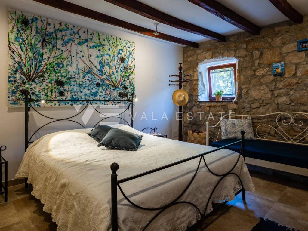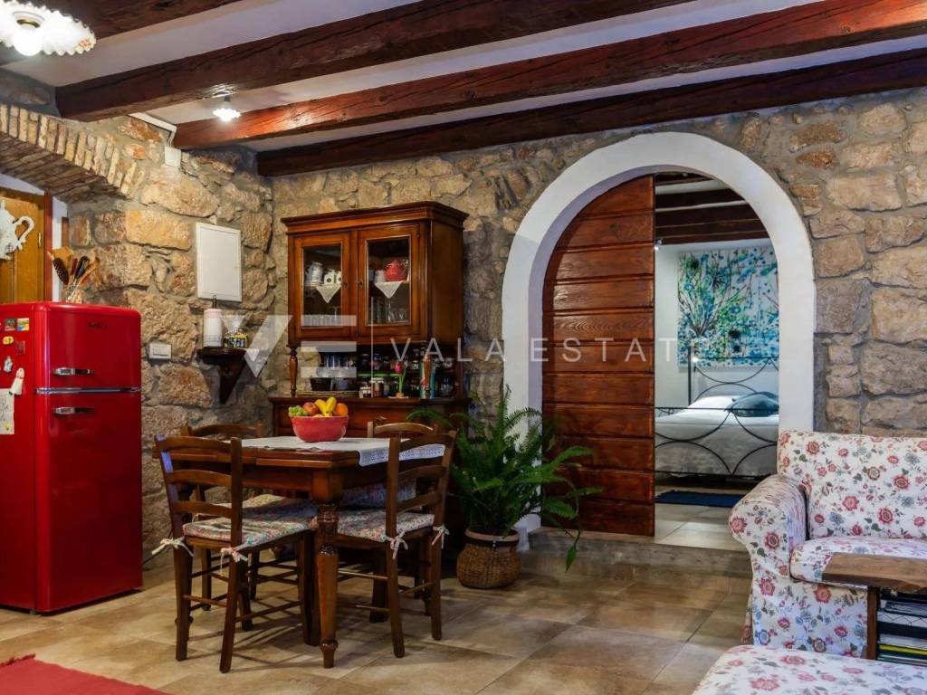 Nekretnine otok Krk, Baška - na prodaju je apartman u prizemlju više obiteljske kuće na vrlo atraktivnoj lokaciji u samom centru stare jezgre Baške udaljenoj svega 50 m od uređene plaže. Ukupna stambena površina apartmana od 60 m2 a raspoređena je na ulazni prostor, kupaonu, dvije spavaće sobe i prostor koji objedinjuje kuhinju s blagovaonom i dnevni boravak. Pripada mu predivna potpuno ograđena okućnica od 182 m2 koja pruža privatnost sa zasađenim mediteranskim biljem na kojoj se nalazi natkrivena terasa od 50 m2, ljetna kuhinja, roštilj, tuš i šterna s izvorom pitke vode. Pri renovaciji 2022. godine koristili su se kvalitetni materijali i oprema, namješten je u rustikalnom stilu, zadržani su autohtoni elementi i kamen, klimatiziran je i ima kamin. Ova nekretnina je rijetka prilika na tržištu zahvaljujući izvrsnoj lokaciji u neposrednoj blizini uređenih plaža i centra sa svim sadržajima te kao takva čini idealan izbor za vlastito korištenje ili za turistički najam. Agencija Vala Estate Malinska će Vam omogućiti siguran i transparentan prijenos vlasništva i sve potrebne dokumentacije.