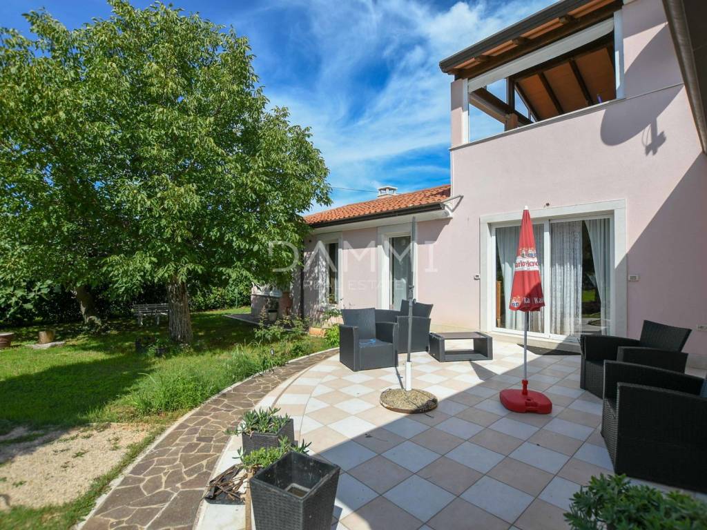 Ova izuzetna samostojeća kuća smještena je u predivnom Umagu, na prostranom zemljištu od 2005 m2, samo 3000 metara od mora i centra grada. S površinom od 244 m2, kuća nudi savršen spoj prostranosti i udobnosti, uključujući tri spavaće sobe i tri kupaonice, što je čini idealnim domom za obitelj gdje svaki član ima vlastitu privatnost.