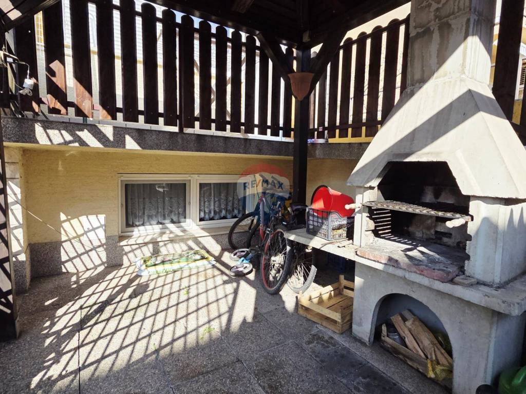 Dvorište je organizirano kao prostor za druženje i odmor, sa sjenicom i grill zonom, idealno za obiteljska okupljanja.