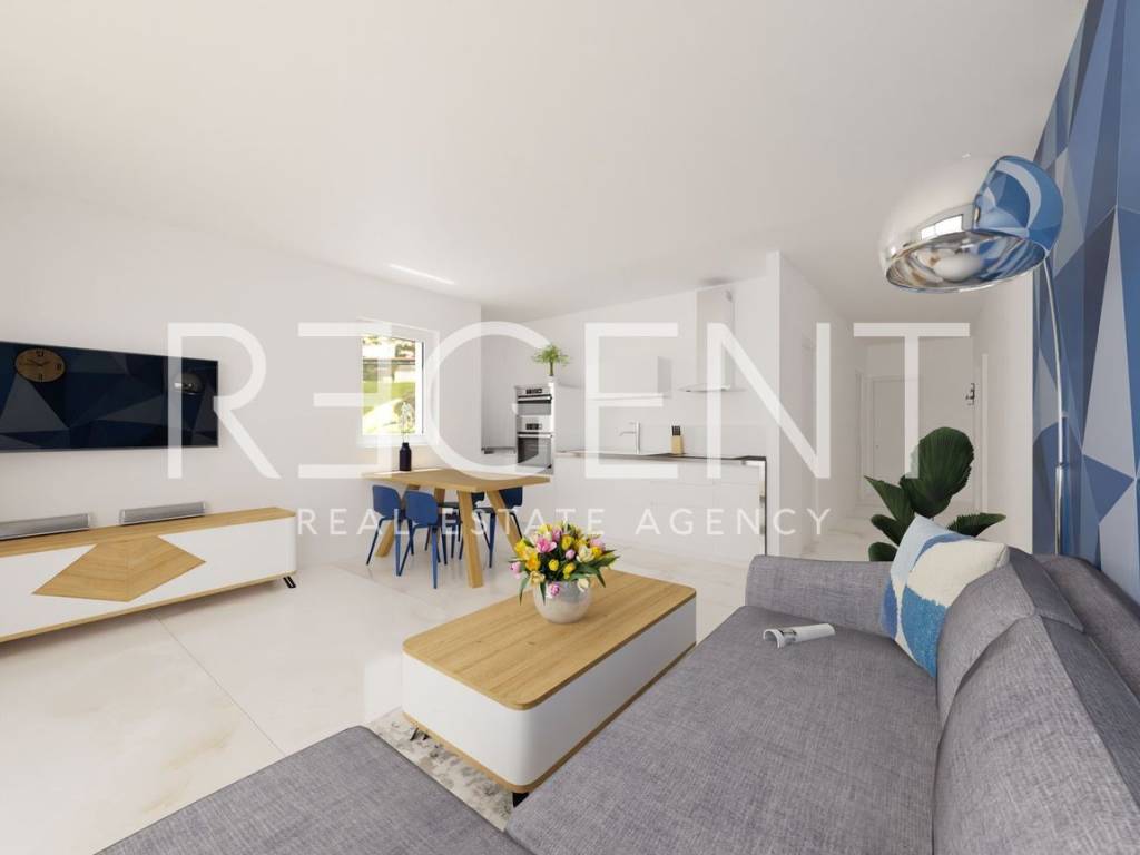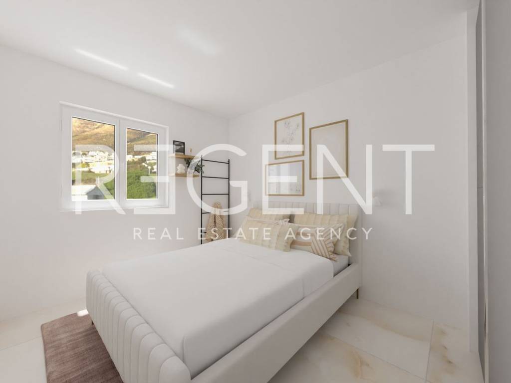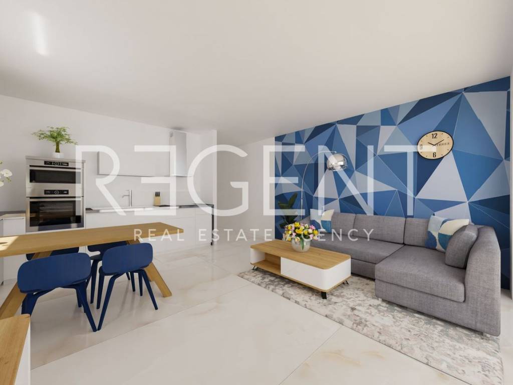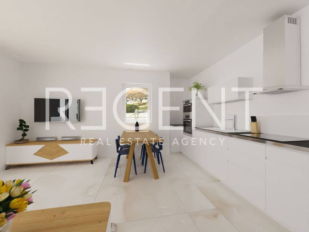 Dvosoban stan nalazi se u prizemlju zgrade u novom stambenom kompleksu u mjestu Blato na Makarskoj rivijeri, svega oko 150 metara od mora. Ukupne neto površine 72,20 m², stan se sastoji od dnevnog boravka s kuhinjom i blagovaonicom, dvije spavaće sobe te dvije kupaonice. Dnevni boravak povezan je s lođom površine od 12,9 m², a stan je orijentiran prema jugu i zapadu, što omogućuje puno prirodnog svjetla tijekom dana. Stan se nalazi u sklopu modernog projekta koji obuhvaća tri manje stambene zgrade s ukupno 30 apartmana. U standardu opreme predviđena je keramika formata 60 × 60 cm kroz cijeli stan, kvalitetna PVC stolarija s dvostrukim staklom te velike staklene stijene prema lođi. Na većim otvorima ugrađuju se električne rolete, dok su na manjim prozorima ručne. Grijanje i hlađenje riješeno je putem klima sustava, a u kupaonicama je predviđen zidni električni radijator. Stanovi imaju protuprovalna ulazna vrata, a kupaonice kvalitetnu sanitarnu opremu uz planirane slavine proizvođača Grohe. Zgrade su opremljene ORONA dizalima te video portafon sustavom proizvođača 2N. Blato je mirno mjesto na južnom dijelu Makarske rivijere, poznato po dugim šljunčanim plažama i kristalno čistom moru. Okruženo je borovom šumom i maslinicima te pruža autentičan mediteranski ambijent idealan za odmor ili život uz more. Makarska je udaljena oko dvadeset kilometra, dok se Drvenik s trajektnom lukom za otok Hvar nalazi se na manje od deset kilometara vožnje, a u samom Blatu postoji i mala marina koja omogućuje vez za brodice. U cijenu stana uključeno je vanjsko parkirno mjesto. Za više informacija o ovom stanu ili dogovor razgledavanja slobodno nas kontaktirajte.