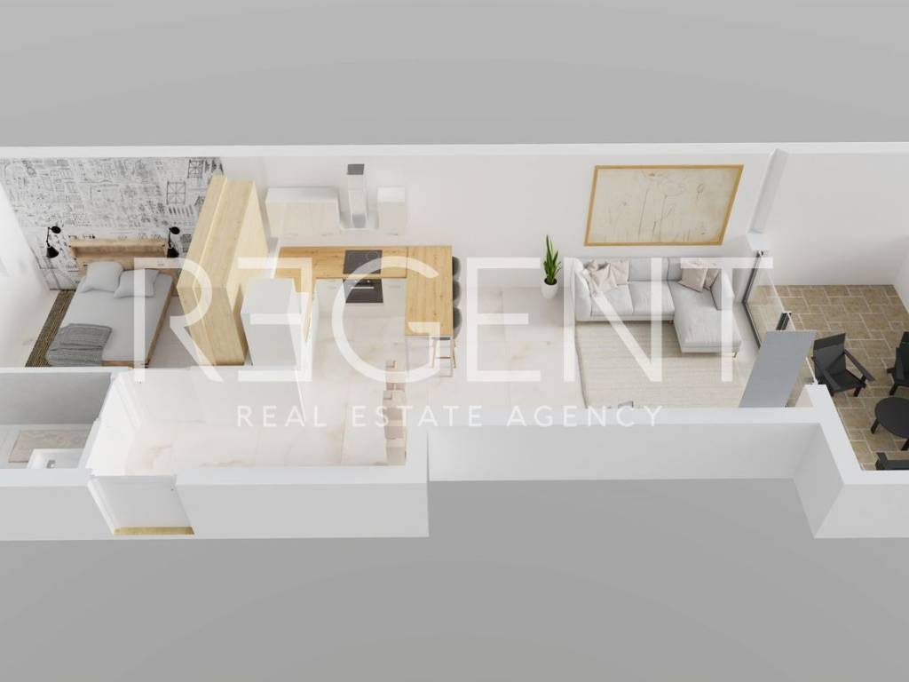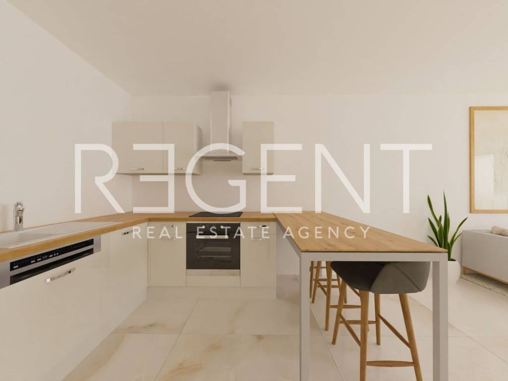 Jednosoban stan nalazi se u prizemlju zgrade u novom stambenom kompleksu u mjestu Blato na Makarskoj rivijeri, svega oko 150 metara od mora. Ukupne neto površine 57.25 m², stan se sastoji od dnevnog boravka s kuhinjom i blagovaonicom, spavaće sobe te kupaonice. Dnevni boravak povezan je s lođom površine od 11.40 m², a stan je orijentiran prema jugu i prema sjeveru, što omogućuje puno prirodnog svjetla tijekom dana. Stan se nalazi u sklopu modernog projekta koji obuhvaća tri manje stambene zgrade s ukupno 30 apartmana. U standardu opreme predviđena je keramika formata 60 × 60 cm kroz cijeli stan, kvalitetna PVC stolarija s dvostrukim staklom te velike staklene stijene prema lođi. Na većim otvorima ugrađuju se električne rolete, dok su na manjim prozorima ručne. Grijanje i hlađenje riješeno je putem klima sustava, a u kupaonicama je predviđen zidni električni radijator. Stanovi imaju protuprovalna ulazna vrata, a kupaonice kvalitetnu sanitarnu opremu uz planirane slavine proizvođača Grohe. Zgrade su opremljene ORONA dizalima te video portafon sustavom proizvođača 2N. Blato je mirno mjesto na južnom dijelu Makarske rivijere, poznato po dugim šljunčanim plažama i kristalno čistom moru. Okruženo je borovom šumom i maslinicima te pruža autentičan mediteranski ambijent idealan za odmor ili život uz more. Makarska je udaljena oko dvadeset kilometra, dok se Drvenik s trajektnom lukom za otok Hvar nalazi se na manje od deset kilometara vožnje, a u samom Blatu postoji i mala marina koja omogućuje vez za brodice. U cijenu stana uključeno je vanjsko parkirno mjesto. Za više informacija o ovom stanu ili dogovor razgledavanja slobodno nas kontaktirajte.