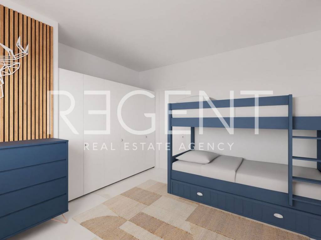 Dvosoban stan nalazi se na drugom katu zgrade u novom stambenom kompleksu u mjestu Blato na Makarskoj rivijeri, svega oko 150 metara od mora. Ukupne neto površine 85.20 m², stan se sastoji od dnevnog boravka s kuhinjom i blagovaonicom, dvije spavaće sobe te dvije kupaonice. Dnevni boravak povezan je s lođom površine od 11.60 m², a stan je orijentiran prema tri strane, zapadu, jugu i prema sjeveru, što omogućuje puno prirodnog svjetla tijekom dana. Stan se nalazi u sklopu modernog projekta koji obuhvaća tri manje stambene zgrade s ukupno 30 apartmana. U standardu opreme predviđena je keramika formata 60 × 60 cm kroz cijeli stan, kvalitetna PVC stolarija s dvostrukim staklom te velike staklene stijene prema lođi. Na većim otvorima ugrađuju se električne rolete, dok su na manjim prozorima ručne. Grijanje i hlađenje riješeno je putem klima sustava, a u kupaonicama je predviđen zidni električni radijator. Stanovi imaju protuprovalna ulazna vrata, a kupaonice kvalitetnu sanitarnu opremu uz planirane slavine proizvođača Grohe. Zgrade su opremljene ORONA dizalima te video portafon sustavom proizvođača 2N. Blato je mirno mjesto na južnom dijelu Makarske rivijere, poznato po dugim šljunčanim plažama i kristalno čistom moru. Okruženo je borovom šumom i maslinicima te pruža autentičan mediteranski ambijent idealan za odmor ili život uz more. Makarska je udaljena oko dvadeset kilometra, dok se Drvenik s trajektnom lukom za otok Hvar nalazi se na manje od deset kilometara vožnje, a u samom Blatu postoji i mala marina koja omogućuje vez za brodice. U cijenu stana uključeno je garažno parkirno mjesto. Za više informacija o ovom stanu ili dogovor razgledavanja slobodno nas kontaktirajte.