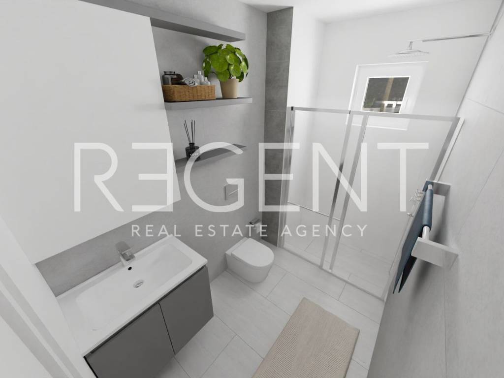 Jednosoban stan nalazi se na trećem (zadnjem) katu zgrade u novom stambenom kompleksu u mjestu Blato na Makarskoj rivijeri, svega oko 150 metara od mora. Ukupne neto površine 61.25 m², stan se sastoji od dnevnog boravka s kuhinjom i blagovaonicom, spavaće sobe te kupaonice. Dnevni boravak povezan je s lođom površine od 11.40 m², a stan je orijentiran prema jugu i prema sjeveru, što omogućuje puno prirodnog svjetla tijekom dana. Stan se nalazi u sklopu modernog projekta koji obuhvaća tri manje stambene zgrade s ukupno 30 apartmana. U standardu opreme predviđena je keramika formata 60 × 60 cm kroz cijeli stan, kvalitetna PVC stolarija s dvostrukim staklom te velike staklene stijene prema lođi. Na većim otvorima ugrađuju se električne rolete, dok su na manjim prozorima ručne. Grijanje i hlađenje riješeno je putem klima sustava, a u kupaonicama je predviđen zidni električni radijator. Stanovi imaju protuprovalna ulazna vrata, a kupaonice kvalitetnu sanitarnu opremu uz planirane slavine proizvođača Grohe. Zgrade su opremljene ORONA dizalima te video portafon sustavom proizvođača 2N. Blato je mirno mjesto na južnom dijelu Makarske rivijere, poznato po dugim šljunčanim plažama i kristalno čistom moru. Okruženo je borovom šumom i maslinicima te pruža autentičan mediteranski ambijent idealan za odmor ili život uz more. Makarska je udaljena oko dvadeset kilometra, dok se Drvenik s trajektnom lukom za otok Hvar nalazi se na manje od deset kilometara vožnje, a u samom Blatu postoji i mala marina koja omogućuje vez za brodice. U cijenu stana uključeno je garažno parkirno mjesto. Za više informacija o ovom stanu ili dogovor razgledavanja slobodno nas kontaktirajte.
