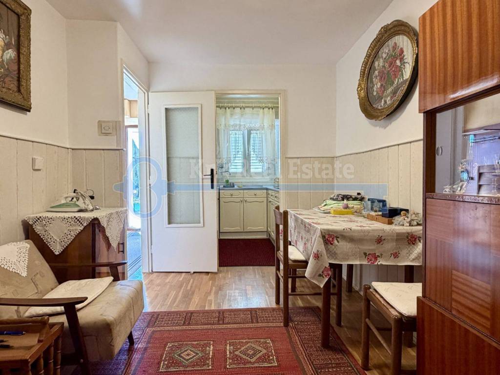 Na prodaju je kamena kuća površine 70 m2 sa dvije stambene jedinice. U suterenu se nalazi garsonijera sa izlazom na terasu. Vanjske stepenice vode do 1. kata gdje se nalazi druga stambena jedinica koja se sastoji od terase, dnevnog boravka, kuhinje, blagovaonice, te 1. kata sa dvije spavaće sobe i wc-om. Nalazi se na dobroj lokaciji. Udaljena je od mora samo 220 metara.