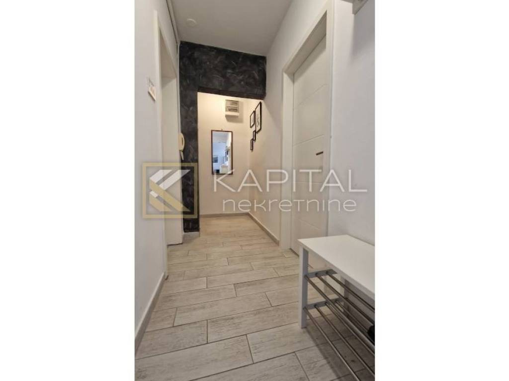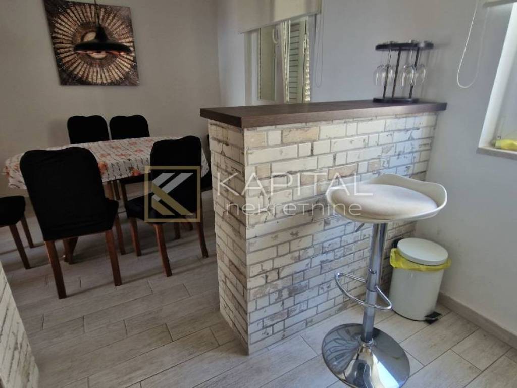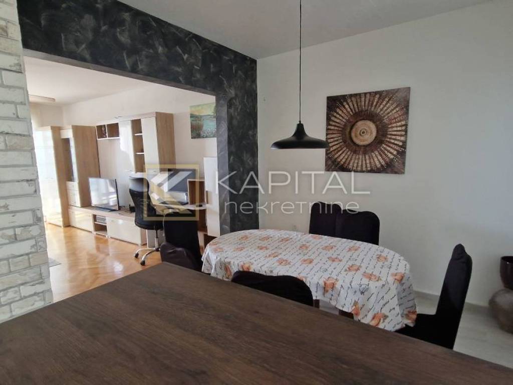 Stan je adaptiran i moderno uređen. Dnevni boravak, kuhinja i blagovaona nalaze se u povezanom prostoru koji je ugodan i funkcionalan za svakodnevni život.
