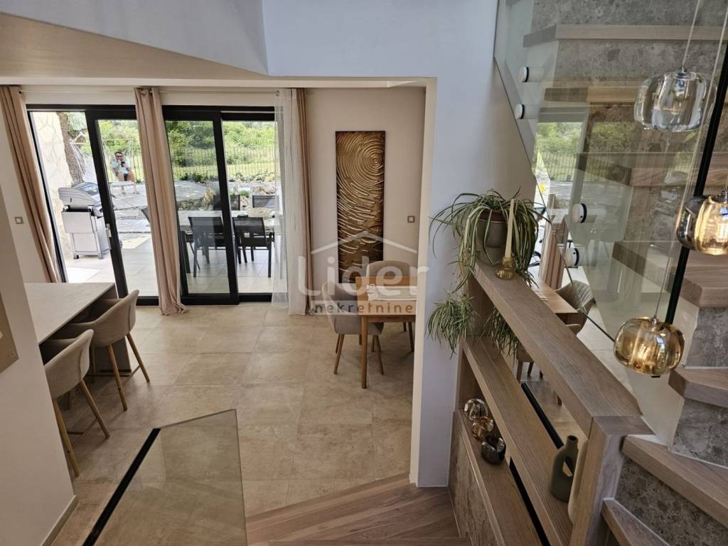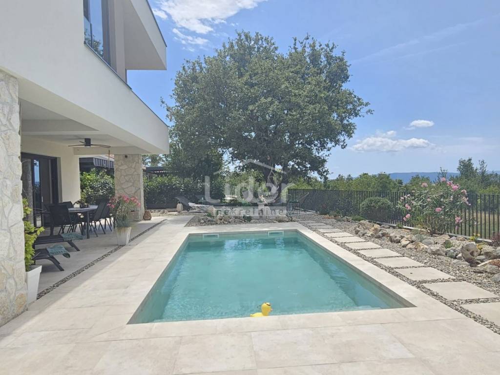 Na otoku Krk prodaje se prekrasna potpuno namještena kuća stambene površine 170 m², smještena na parceli od 400 m² s uređenom okućnicom i bazenom. Nekretnina je idealna za obiteljski život, odmor ili turistički najam.