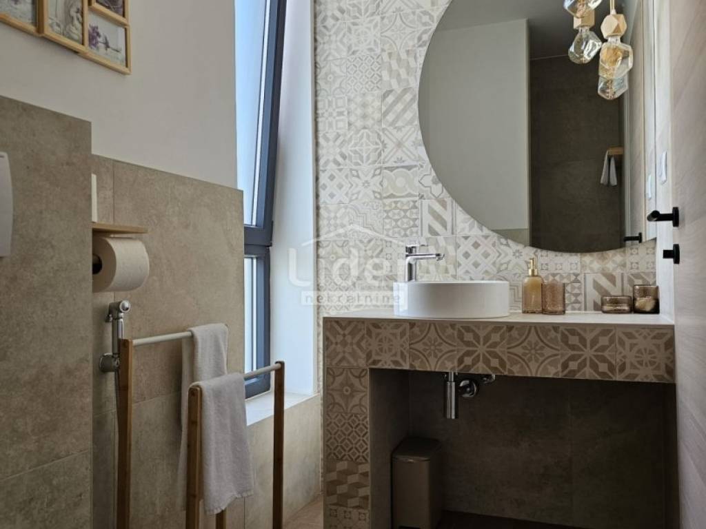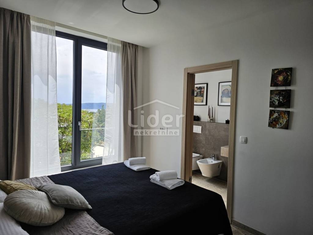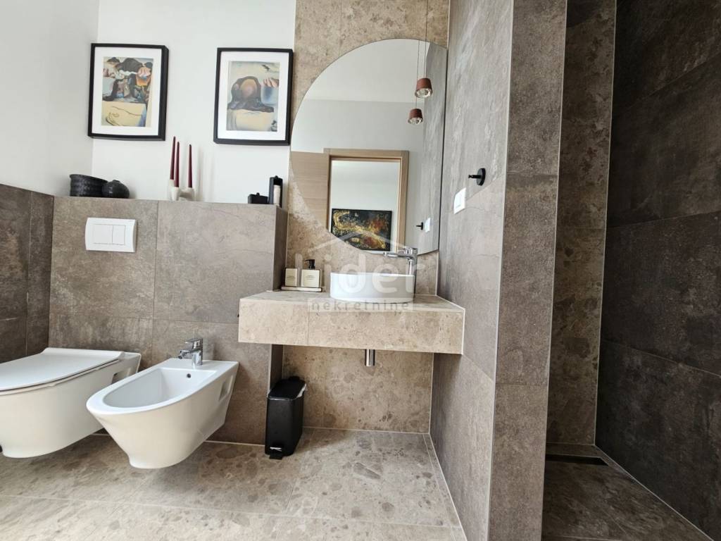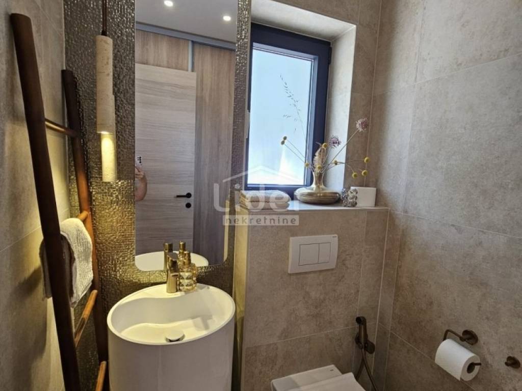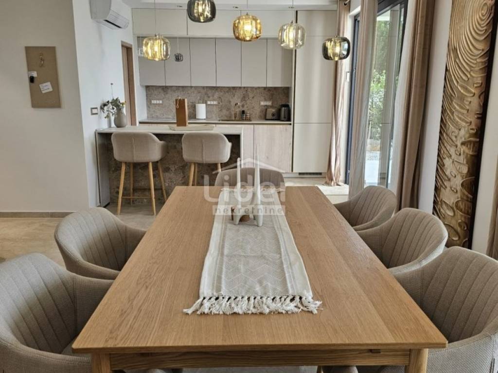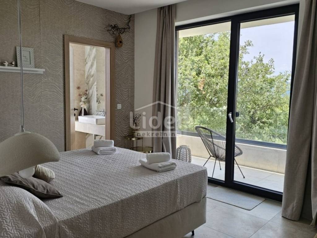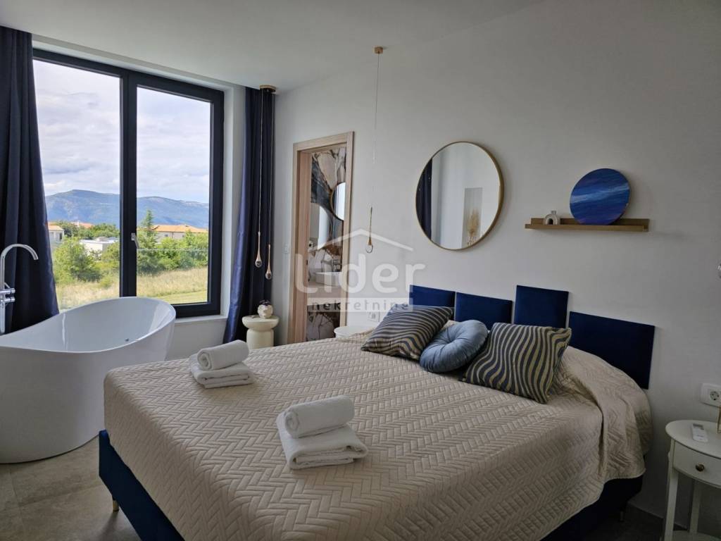 Kuća se prostire na dvije etaže. U prizemlju se nalazi prostrani dnevni boravak, kuhinja s blagovaonicom te WC. Na prvom katu nalaze se četiri spavaće sobe, svaka s vlastitom kupaonicom, što pruža visoku razinu komfora i privatnosti.