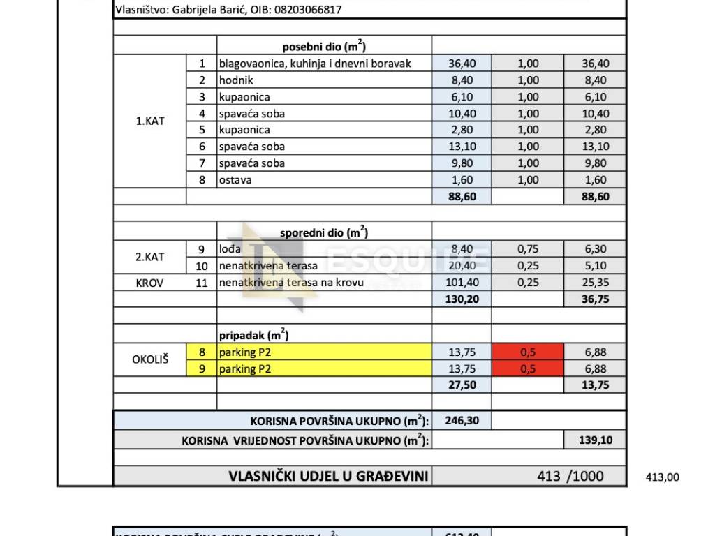 Ukupna obračunska korisna vrijednost: 139,10 m²