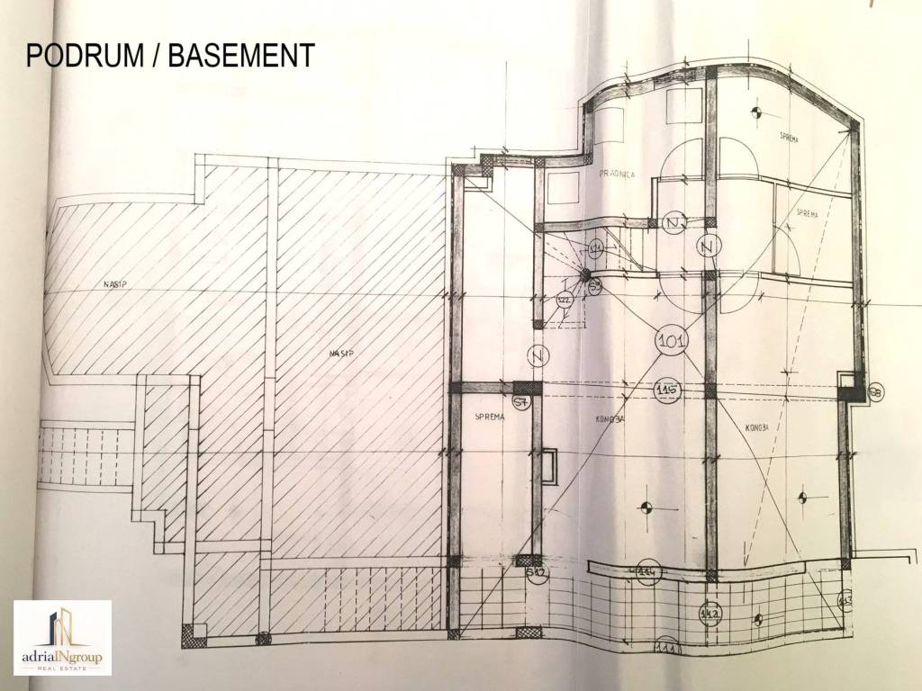// Suteren: garaža predviđena za 3 do 4 automobila, konoba površine oko 40 m², ostava, praonica...