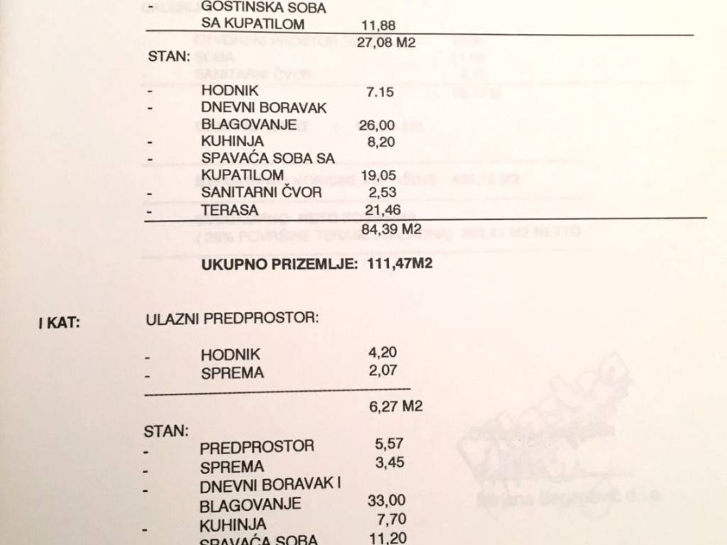 Ukupna bruto površina kuće iznosi 435,12m², dok neto stambena površina iznosi 392,87m².