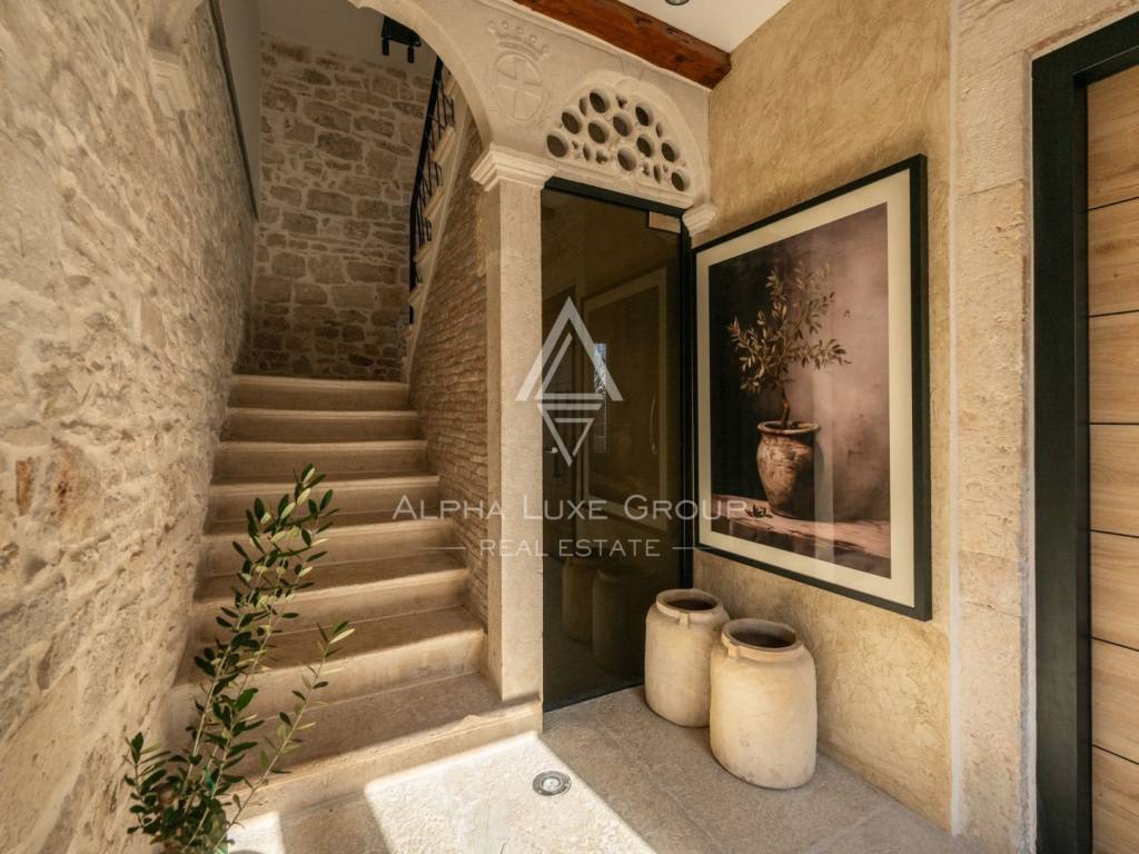 Interijer je osmišljen kako bi maksimalno iskoristio prostor i osigurao udobnost, uz istovremeno očuvanje tradicionalnog karaktera zgrade. Dnevni boravak i blagovaonica organizirani su u otvorenom konceptu koji prostoru daje osjećaj prostranosti unatoč kompaktnim dimenzijama. Izvorni kameni zidovi pažljivo su sačuvani, čime je prostoru dodana toplina i prepoznatljiva mediteranska atmosfera koja odražava povijesni šarm Bala.