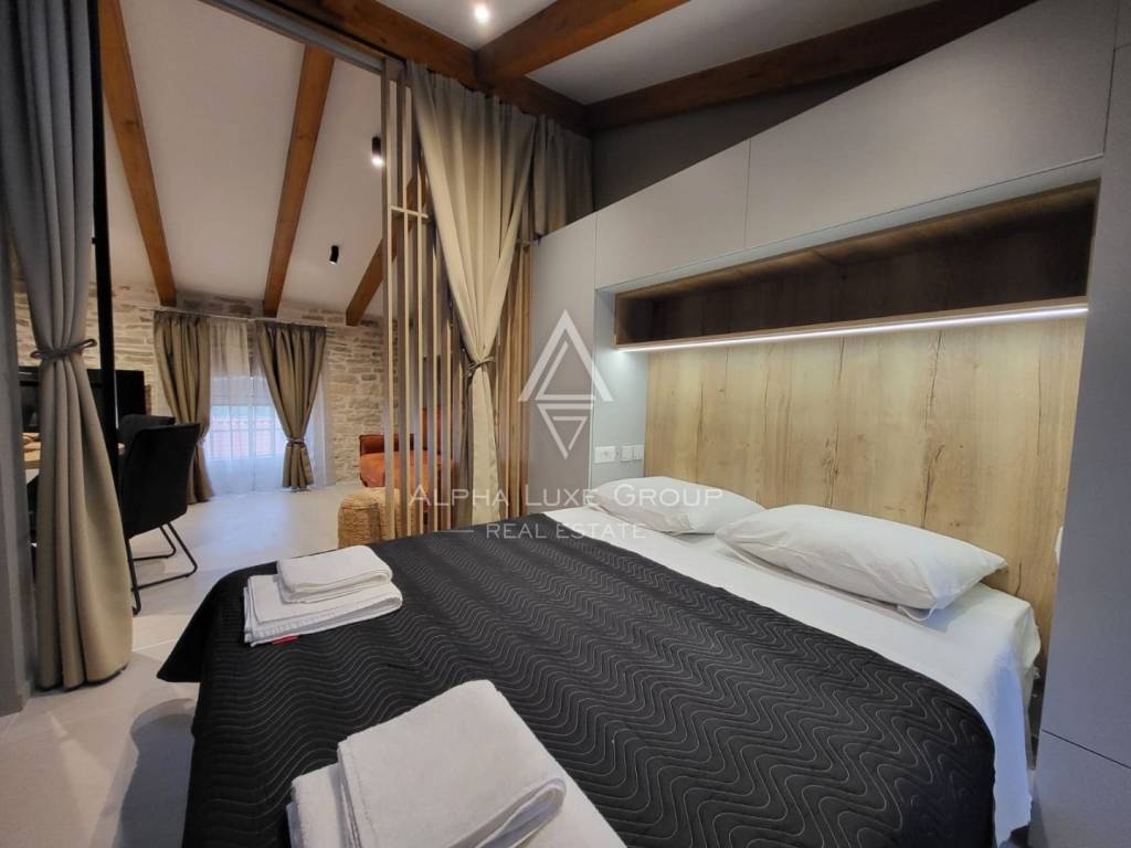 Stan je potpuno namješten i opremljen električnim podnim grijanjem te klima uređajem, što osigurava ugodnu temperaturu tijekom cijele godine. Zahvaljujući izvrsnoj lokaciji u staroj gradskoj jezgri i kvalitetnoj renovaciji, ova nekretnina posebno je atraktivna za parove, pojedince ili investitore koji traže jedinstvenu nekretninu u jednom od najljepših istarskih mjesta.