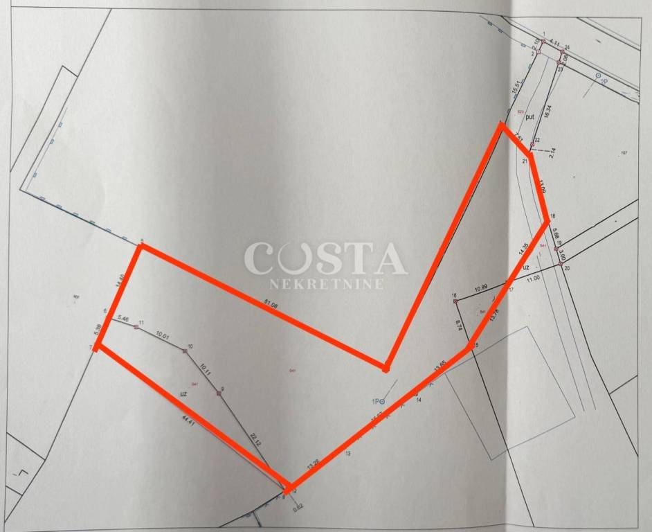 Parcela je nepravilnog oblika, prvi dio je prosječne širine 20 m te dužine 50 m, dok je drugi dio prosječne dužine 50 m i širine 13 m. Zemljištu je pravom služnosti osiguran pristupni put širine 5 m na asfaltiranu cestu udaljenu 15 m od terena.