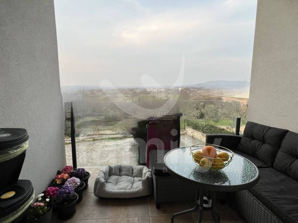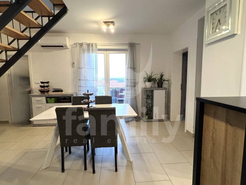 Stan površine 88 m² nalazi se u mirnom mjestu Bale u srcu Istre. Stan je funkcionalno raspoređen na dvije etaže i pruža ugodan prostor za svakodnevni život ili boravak tijekom odmora, sastoji se od prostranog dnevnog boravka sa kuhinjom i blagovaonicom, tri spavaće sobe, kupaonice i zasebnim toaletom. Iz dnevnog dijela izlazi se na balkon, koji pruža dodatni prostor za opuštanje, jutarnju kavu ili uživanje na svježem zraku. PVC stolarija sa komarnicima i roletama je postavljena u cijelom stanu.
