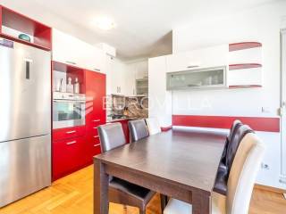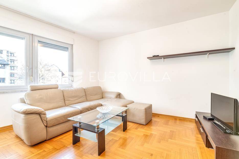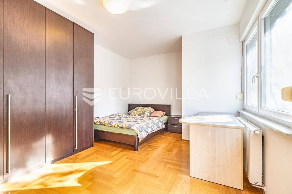 Zagreb, TREŠNJEVKA, u Ogrizovićevoj ulici, nadomak svih potrebnih sadržaja, iznajmljuje se djelomično namješten četverosoban stan koji se nalazi na drugom katu zgrade novije gradnje s liftom. Posebna pogodnost ovog stana je prostrana terasa i zimski vrt, te garažno parkirno mjesto. Orijentacija stana je jug-zapad, te je stan svjetao i prostran.Sastoji se od prostranog ulaznog hodnika, tri spavaće sobe od kojih jedna master sa bračnim krevetom, radnim stolom i velikim ormarom dok će druge dvije biti namještene u dogovoru s budućim najmoprimcima, zatim dvije kupaonice- jedna s kadom a jedna s tuš kabinom, velikog dnevnog boravka s blagovaonicom i kuhinjom u kojoj je novi hladnjak i nova perilica suđa, zimskog vrta sa sjedećom garniturom, te velike terase s koje se pruža pogled na zelenilo. Izlaz na terasu je iz dnevne sobe i iz master spavaće. Stan je klimatiziran, grijanje je etažno plinsko, a pripada mu i spremište u podrumu zgrade.Nalazi se na idealnoj lokaciji, u blizini javnog prijevoza, Doma sportova, tržnice, te raznih kafića, trgovina i restorana, ali zaklonjen od buke i prometa.Stan je moguće iznajmiti bez parkirnog mjesta, te je cjena stana najma u tom slučaju 1300 eura.Za ostale informacije stojimo na raspolaganju.... Više na eurovilla.hr, ID: 132755