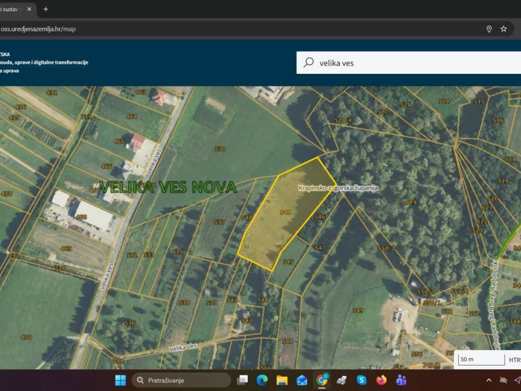 Na prodaju je građevinsko zemljište u Krapini, naselje Velika Ves, udaljeno svega 3 km od centra Krapine, te 45 km od Zagreba. Parcela je površine 7372 m2, na odličnoj lokaciji, te se pruža prekrasan pogled na na okolne šume i livade. Nekretnina je idealna za gradnju obiteljske kuće ili kuće za odmor, no može biti i dobra investicija u svrhu turizma. Zemljište je u potpunosti ograđeno metalnom ogradom, sva potrebna infrastruktura za gradnju je u blizini. Vlasništvo je uredno i bez tereta. Za više informacija i razgled, stojimo Vam na raspolaganju. Damir 098/951-4026