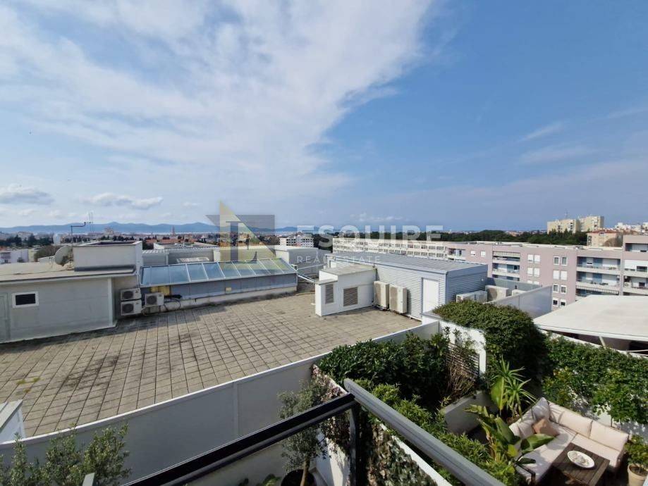 S gornje etaže pruža se lijep pogled na grad i more. Ukupna neto površina stana iznosi 91.15 m², a bruto s dodacima 121.47 m².