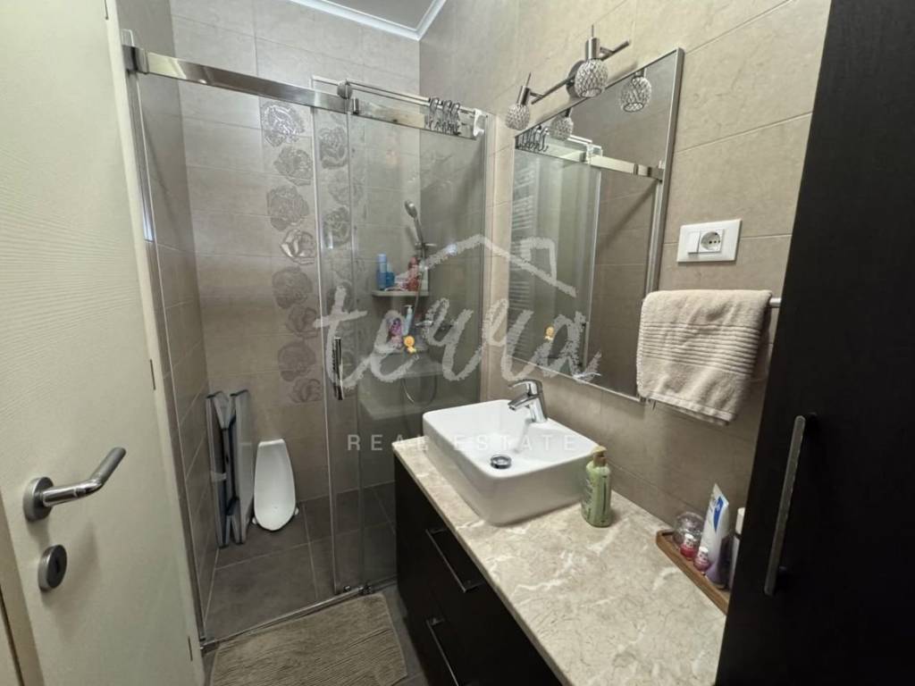 Ulaz u stan vanjskim stepenicama, gdje se nalazi vlastita natkrivena terasa od 20 četvornih metara sa roštiljem.