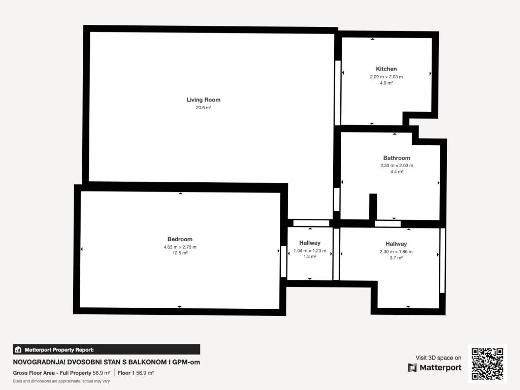 Stan se nalazi na 5. katu (od ukupno 8 katova) zgrade s liftom. Stan ima površinu od 58 m2. Unutar stana nalaze se: