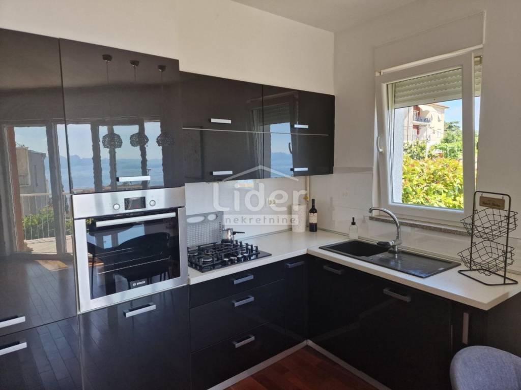 Donja Drenova, komforan, dvosoban stan sa dnevnim boravkom, veličine 64 m2, u visokom prizemlju dvokatnice. Stan se nalazi u novogradnji, potpuno je opremljen i namješten modernim i vrlo kvalitetnim namještajem. Grijanje je etažno centralno, gradski plin. Tu je i velika terasa sa izlazom na prelijepu ograđenu okućnicu, a iz svake prostorije se pruža otvren pogled na more. Vlastiti parking na okućnici zgrade. Pozicija i lokacija izvanredna, blizina svih sadržaja potrebnih za ugodan život, vrtića, šole, supermarketa , autobusna stanica gradske linije u neposrednoj blizini. Nekretnina poželjna za poslovne ljude, ali također i sve koji žele živjeti u dobrom djelu grada
