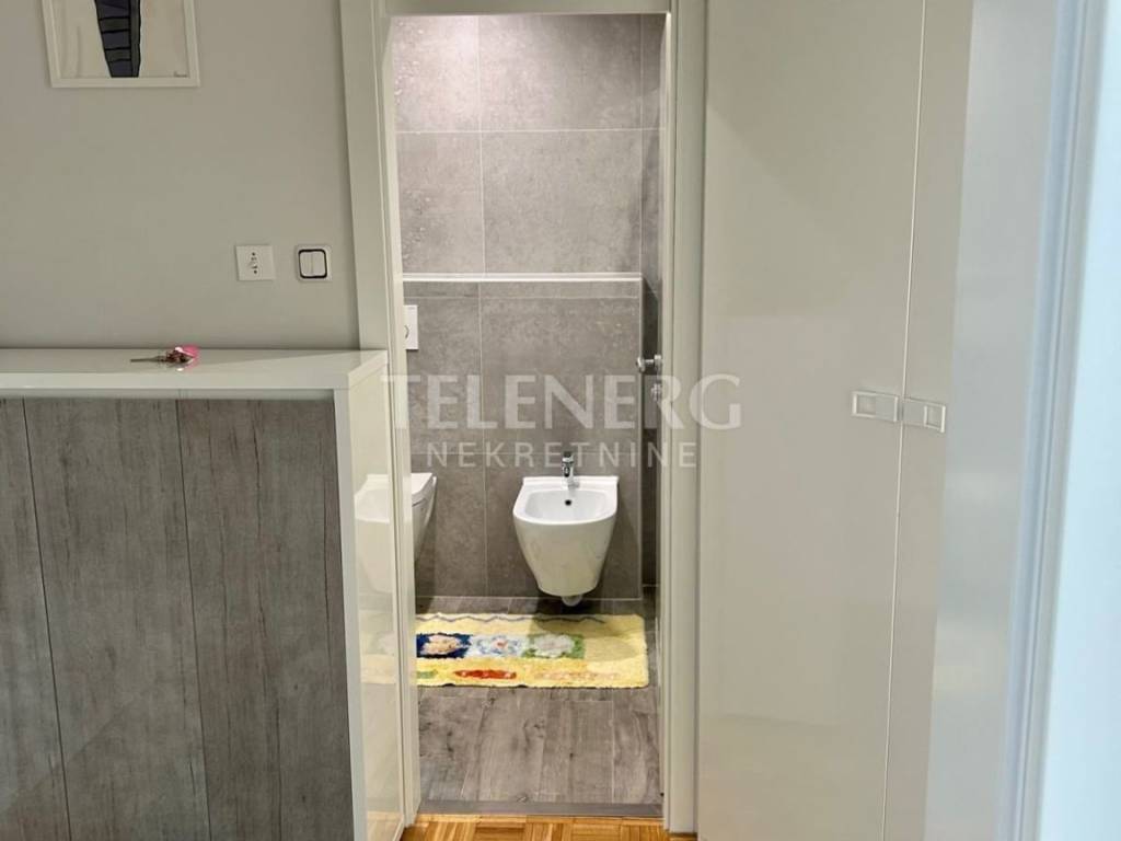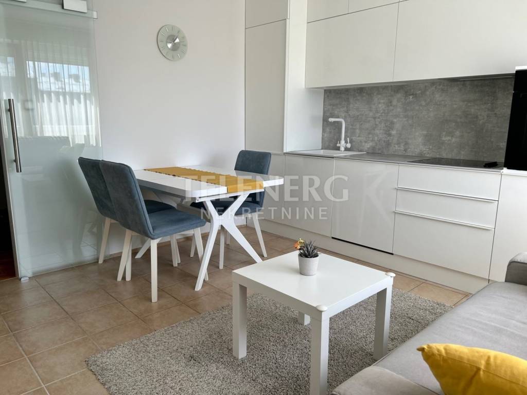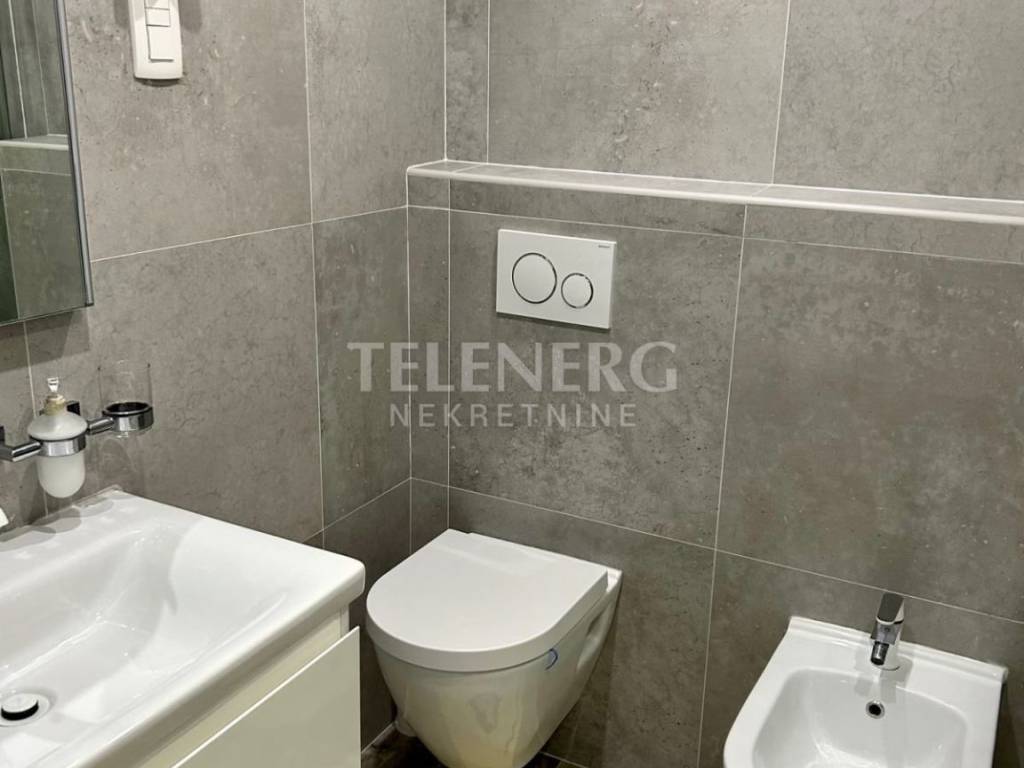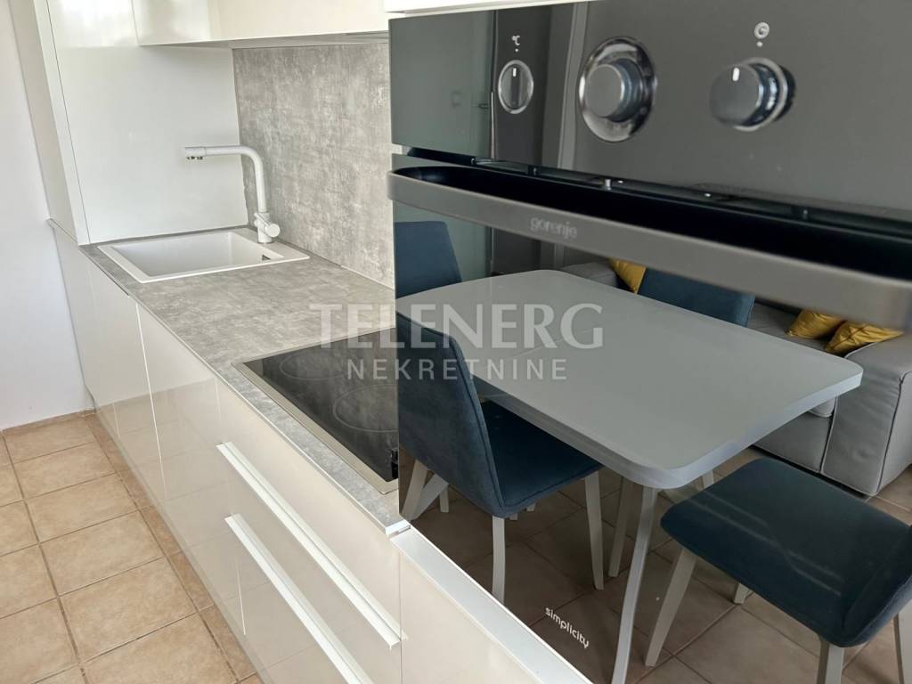 Stan je potpuno opremljen i ima klima uređaj, novu kuhinju, filtriranu vodu, perilicu posuđa, pećnicu, ploču za kuhanje, hladnjak, zamrzivač, perilicu rublja, Smart TV, prostrane ugradbene ormare.