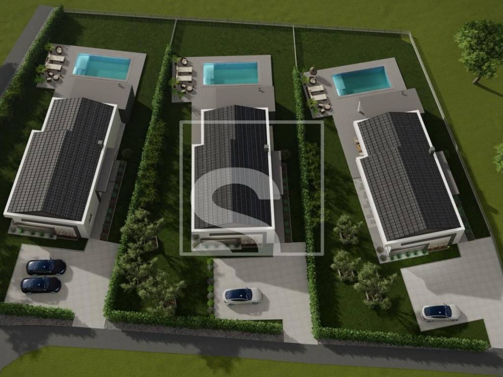 Nedaleko od centra Barbana prodajemo veliko građevinsko zemljište ukupne površine 3231 m2, predviđen za izgradnju 3 moderne vile s bazenom.