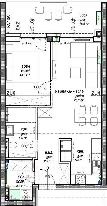 Prodaje se stan površine 48,40 m2 s lođom površine 10,50 m2 na drugom katu niskoenergetske stambeno - poslovne zgrade na odličnoj lokaciji. Zgrada se sastoji od podruma, prizemlja, prvog, drugog i trećeg kata te sadrži ukupno 108 stambenih jedinica i 2 poslovna prostora. Moguć je odabir podnih obloga (keramika, parket ili laminat) te odabir unutarnje stolarije. Uz stan moguća je kupovina vanjskog parkirnog mjesta, garažnog mjesta bez spremišta ili garažnog mjesta sa spremištem.