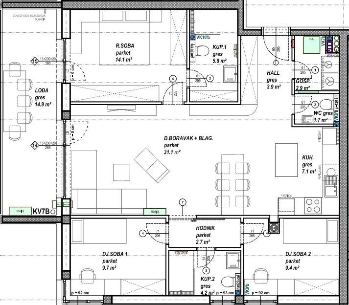 Prodaje se stan površine 92,60 m2 s balkonom površine 14,90 m2 na drugom katu niskoenergetske stambeno - poslovne zgrade na odličnoj lokaciji. Zgrada se sastoji od podruma, prizemlja, prvog, drugog i trećeg kata te sadrži ukupno 108 stambenih jedinica i 2 poslovna prostora. Moguć je odabir podnih obloga (keramika, parket ili laminat) te odabir unutarnje stolarije. Uz stan moguća je kupovina vanjskog parkirnog mjesta, garažnog mjesta bez spremišta ili garažnog mjesta sa spremištem.