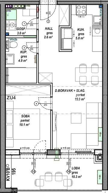 Prodaje se stan površine 46,30 m2 s lođom površine 10,30 m2 na drugom katu niskoenergetske stambeno - poslovne zgrade na odličnoj lokaciji. Zgrada se sastoji od podruma, prizemlja, prvog, drugog i trećeg kata te sadrži ukupno 108 stambenih jedinica i 2 poslovna prostora. Moguć je odabir podnih obloga (keramika, parket ili laminat) te odabir unutarnje stolarije. Uz stan moguća je kupovina vanjskog parkirnog mjesta, garažnog mjesta bez spremišta ili garažnog mjesta sa spremištem.
