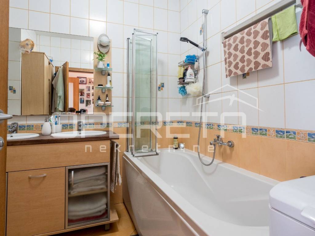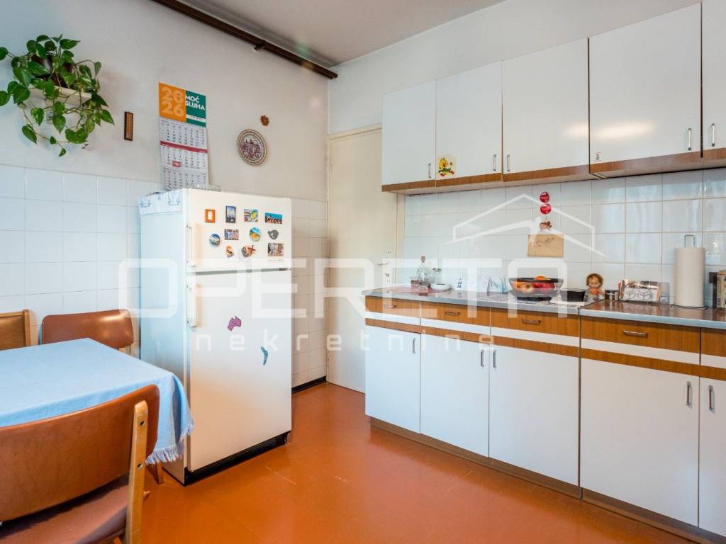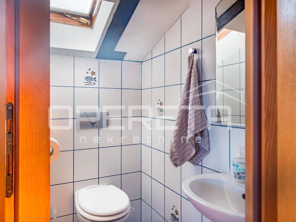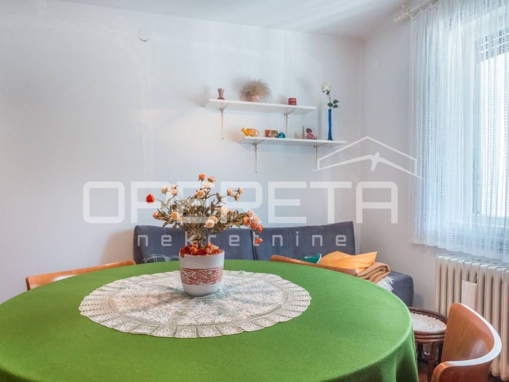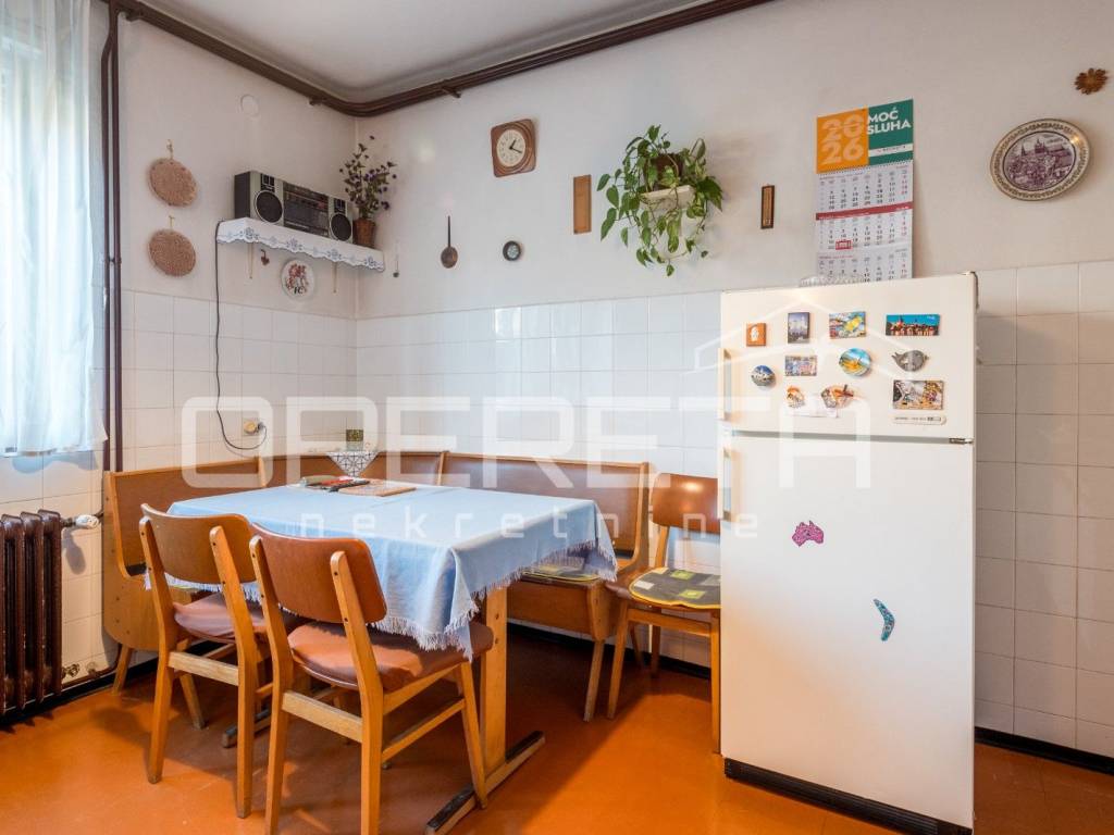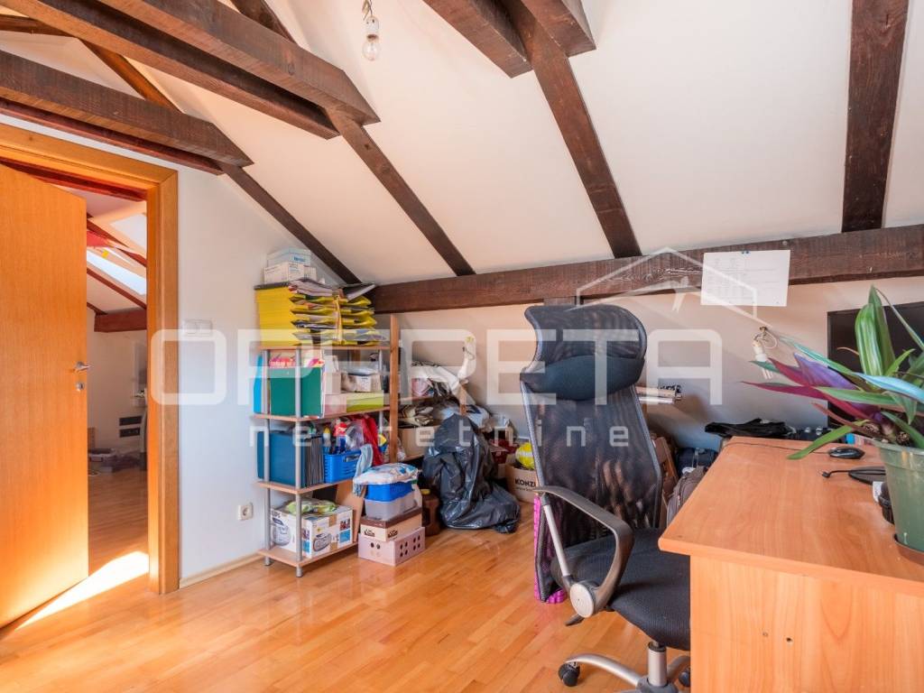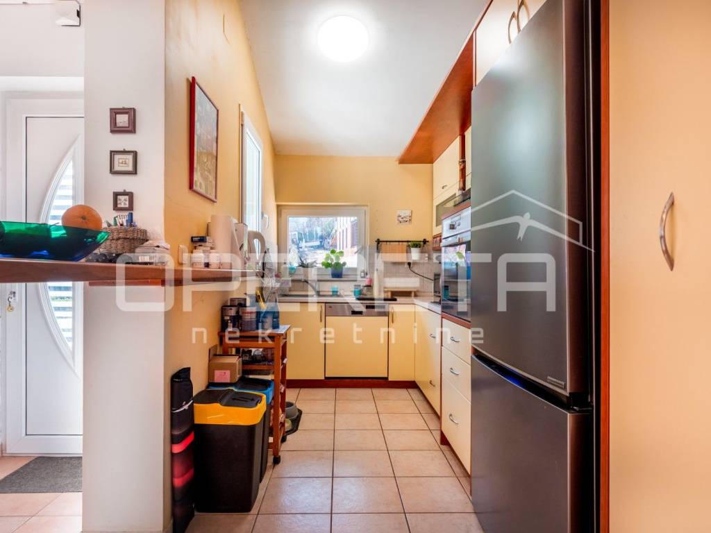U prizemlji i na prvom katu nalazi se stariji dio kuće koja se sastoji od sobe, kuhinje, ostave, wc-a i velikog spremišta na donjoj etaži te 4 sobe, kupaonice i terase na gornjoj etaži.