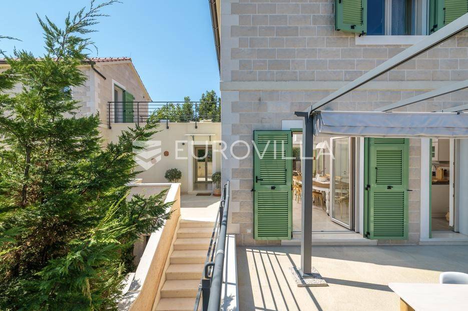 Vrboska, luksuzna vila vrhunske kvalitete gradnje i modernog dizajna, potpuno namještena te spremna za korištenje tijekom cijele godine.U suterenu se nalaze prostorije namijenjene opuštanju i svakodnevnim potrebama, uključujući privatnu teretanu, igraonicu, dječju sobu, kupaonicu, praonicu, spremište te hodnik koji povezuje sve prostorije. Prizemlje vile sastoji se od prostranog ulaznog hodnika, moderne kuhinje i dodatne ljetne kuhinje, kupaonice te hodnika koji vodi prema vanjskom prostoru. Iz prizemlja se izlazi na prostranu terasu od 24 m² te na terasu s bazenom, idealnu za odmor i druženje.Na prvom katu smještene su tri elegantne spavaće sobe, svaka s vlastitom kupaonicom, garderoba, hodnik, terasa te dodatni studio prostor koji pruža fleksibilnost korištenja. Dodatnu vrijednost nekretnini daju terasa s jacuzzijem površine 45 m², prostrani parking od 68 m², spremište s tehničkom prostorijom površine 36 m² te podrum od 16,5 m².Ova vila predstavlja iznimnu priliku za luksuzno stanovanje ili investiciju u turistički najam, nudeći savršen spoj privatnosti, komfora i vrhunske opremljenosti.Za dodatna pitanja, stojim Vam na raspolaganju.... Više na eurovilla.hr, ID: 314908