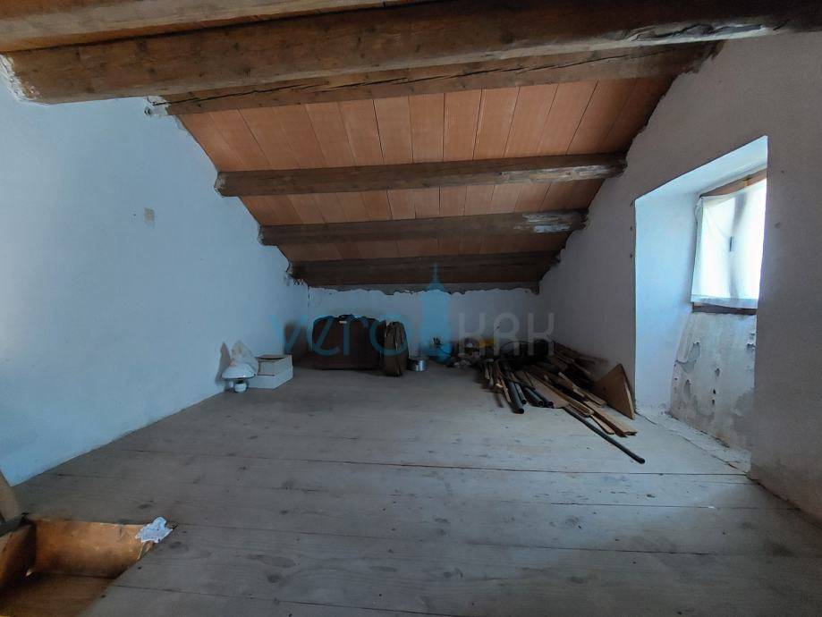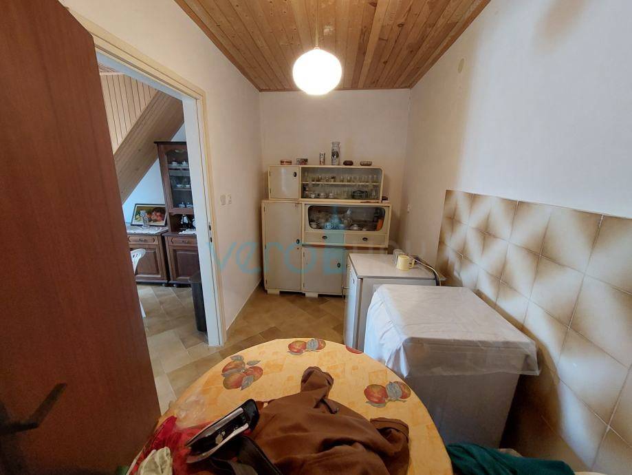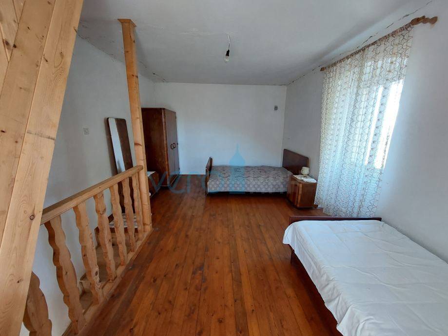 Kuća je dvojni objekt, razvedena na tri etaže ukupne bruto površine 91 m2, od toga neto 65m2. Razlika u površini je u debelim kamenim zidovima. Kući pripada okućnica od 58 m2 i vrt od 100m2. Krov je nov, kuća je spojena na strujnu mrežu. Potrebno je spojiti gradski vodovod i iskopati septičku jamu. U sredini kuće postavljen je kamin, autentično ognjište, pa je na taj autohtoni romantični način riješeno grijanje. Prizemlje ima ukupno 29 m2 ( ulazni prostor, kupaonica, kuhinja i blagovaonica). Prvi kat ima 18 m2 (soba i 12 m2 terasa) Na prvom katu se postavljanjem pregrade može dobiti dvije-tri sobe. Visoko potkrovlje ima 18m2 (soba).