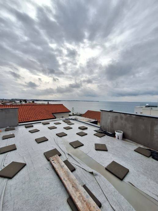 Vir južna strana stan uz plažu pogled na more krovna terasa top lokacija. Apartman na drugom kat sastoji se od kihinja db blagavaonica open space princip, tri spavaće sobe, kupatilo te dodatni wc, logja. Ukupno neto stambene povrsine 85m². Unutarnjim stepenište vodi na krovnu terasu koja pripada tom stanu. U zatvorenom stubišnom dijelu krovne terase nalazi se tuš,izlaz na krovnu terasu sa koje se pruža prekrasan pogled na otoke i Zadarski arhipelag. Na krovnoj terasi izvodi za kuhinju i jacuzi. Trasa ukupno 85m² tlocrtne iskoristive površine trenutno se završava. Apartmanu pripda parkirno mjesto. Objekt spojen na na gradski vodovod i knalaizaciju. Udaljeno od plaže 30m. Cijena 350.000€ Cijenjene ponude i pozivi na 0916036347 IN TRADE NEKRETNINE