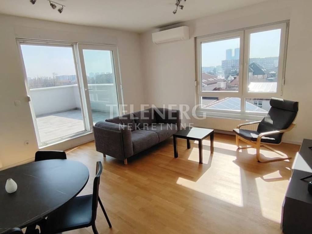 Stan se nalazi na trećem katu novije zgrade i sastoji se od: dnevnog boravka s kuhinjom i blagovaonicom, spavaće sobe, dodatne sobe (radna ili dječja soba), kupaonice, ulaznog prostora, prostrane terase površine 29 m². Unutarnja površina stana iznosi 57 m².