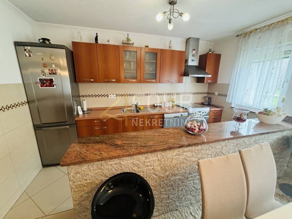 Okolica stana nudi mir i privatnost, a istovremeno je blizu svih potrebnih sadržaja i prometnica. Terasa je djelomično ostakljena, a okućnica uredno uređena, što dodatno naglašava ugodnu atmosferu doma. Stan se prodaje namješten i spreman za useljenje.