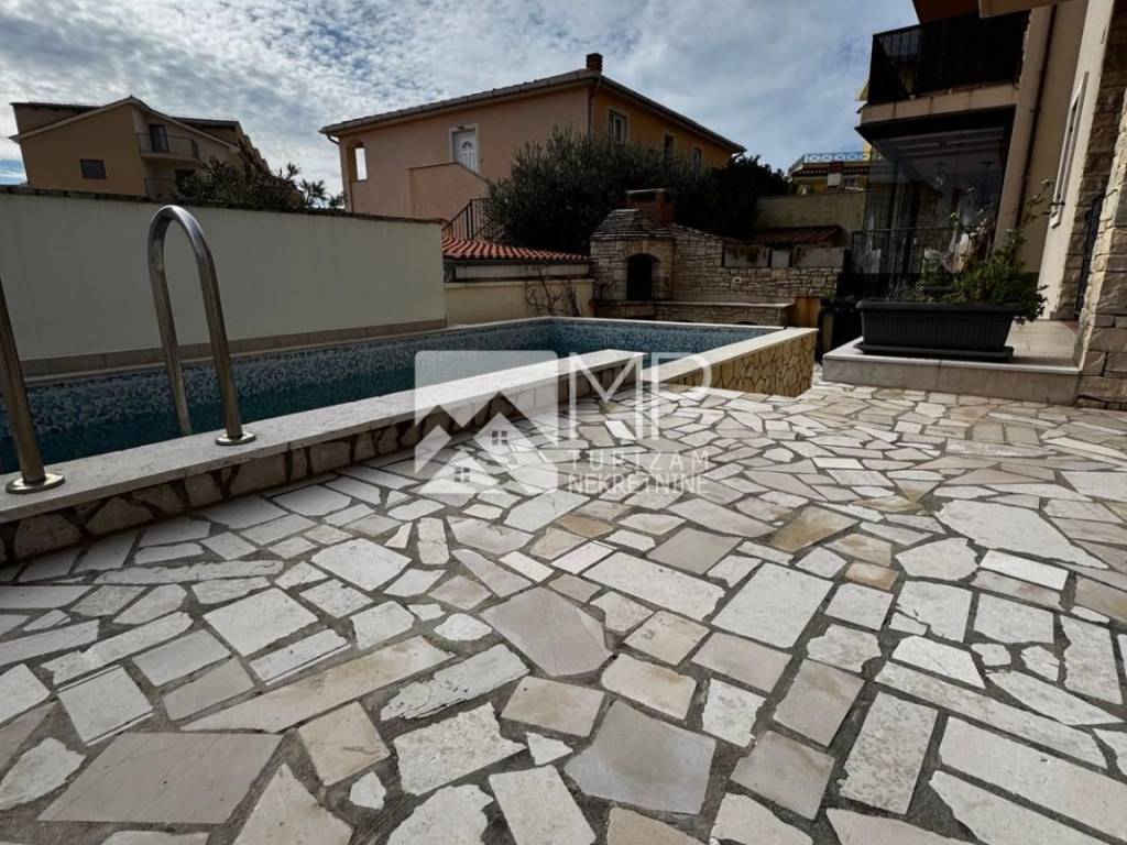 U vrtu se nalazi bazen i ljetna kuhinja, a tu je i pripadajuće parkirno mjesto (PM9) u vlasništvu. Sa strane zgrade postoji direktan ulaz u okućnicu kroz mala vrata, uz glavni ulaz u zgradu.